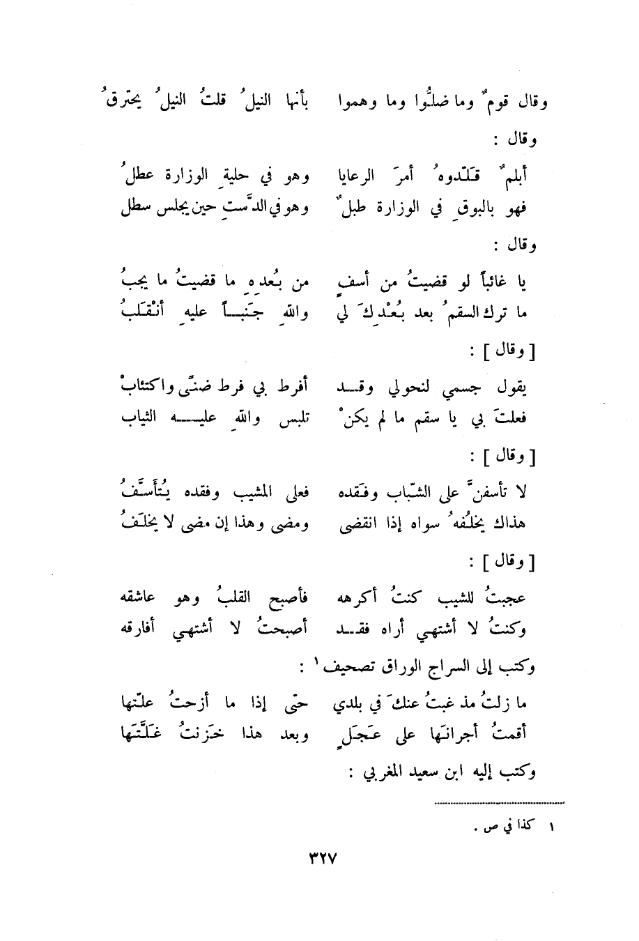 وكنت لا أشتهي أراه فقد ... أصبحت لا أشتهي أفارقه وكتب إلى السراج الوراق تصحيف (1) :