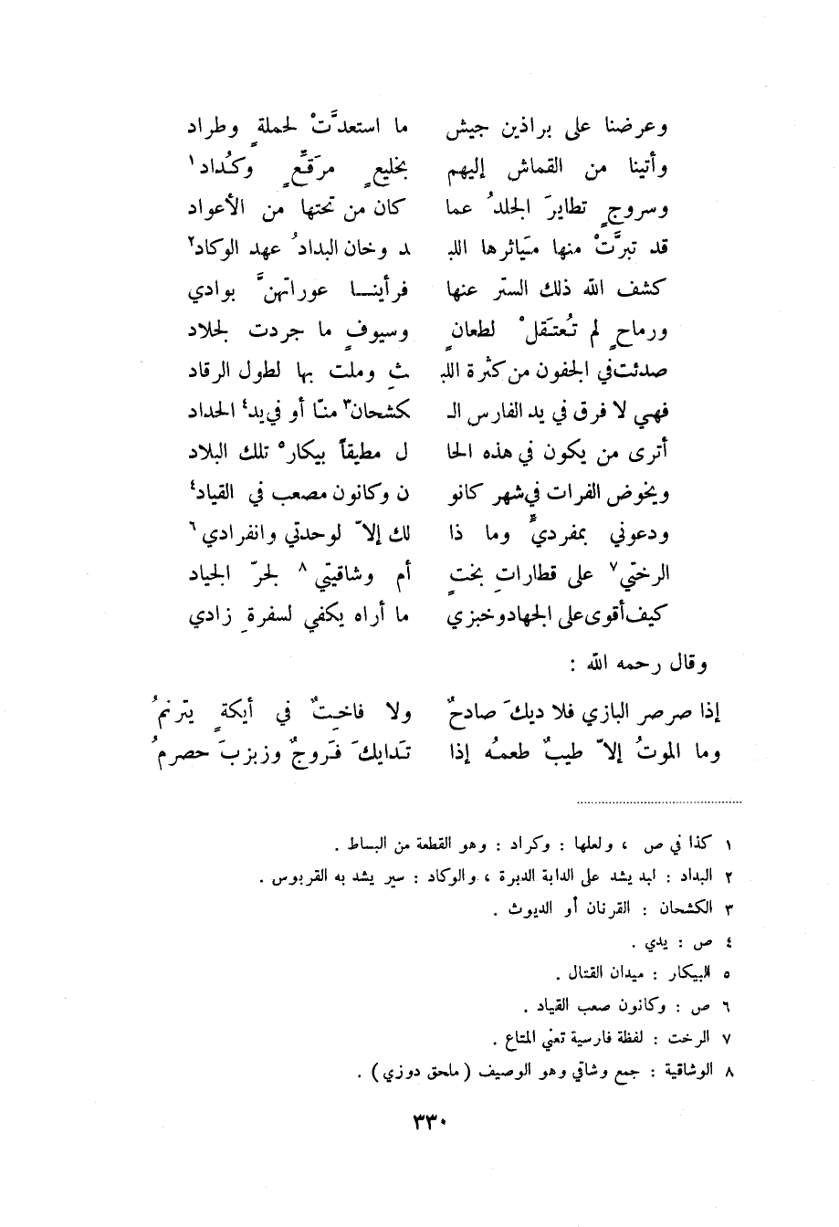 وعرضنا على براذين جيش ... ما استعدّت لحملةٍ وطراد