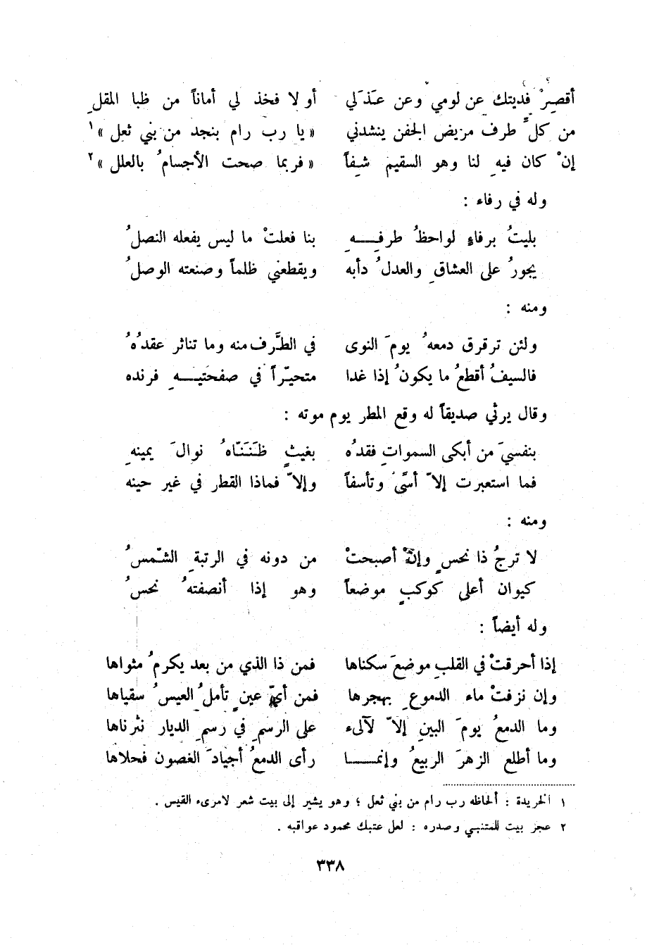 (2) عجز بيت للمتنبي وصدره: لعل عتبك محمود عواقبه.