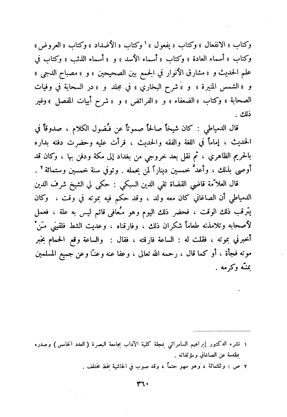 (1) نشره الدكتور إبراهيم السامرائي بمجلة كلية الآداب بجامعة البصرة (العدد الخامس) وصدره بمقدمة عن الصاغاني ومؤلفاته.