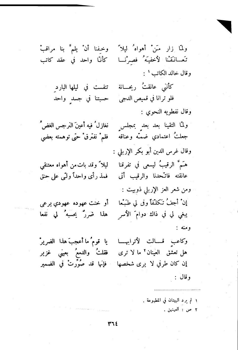 تعانقنا لأخفيه فصرنا ... كأنّا واحد في عقد كاتب وقال خالد الكاتب (1) :