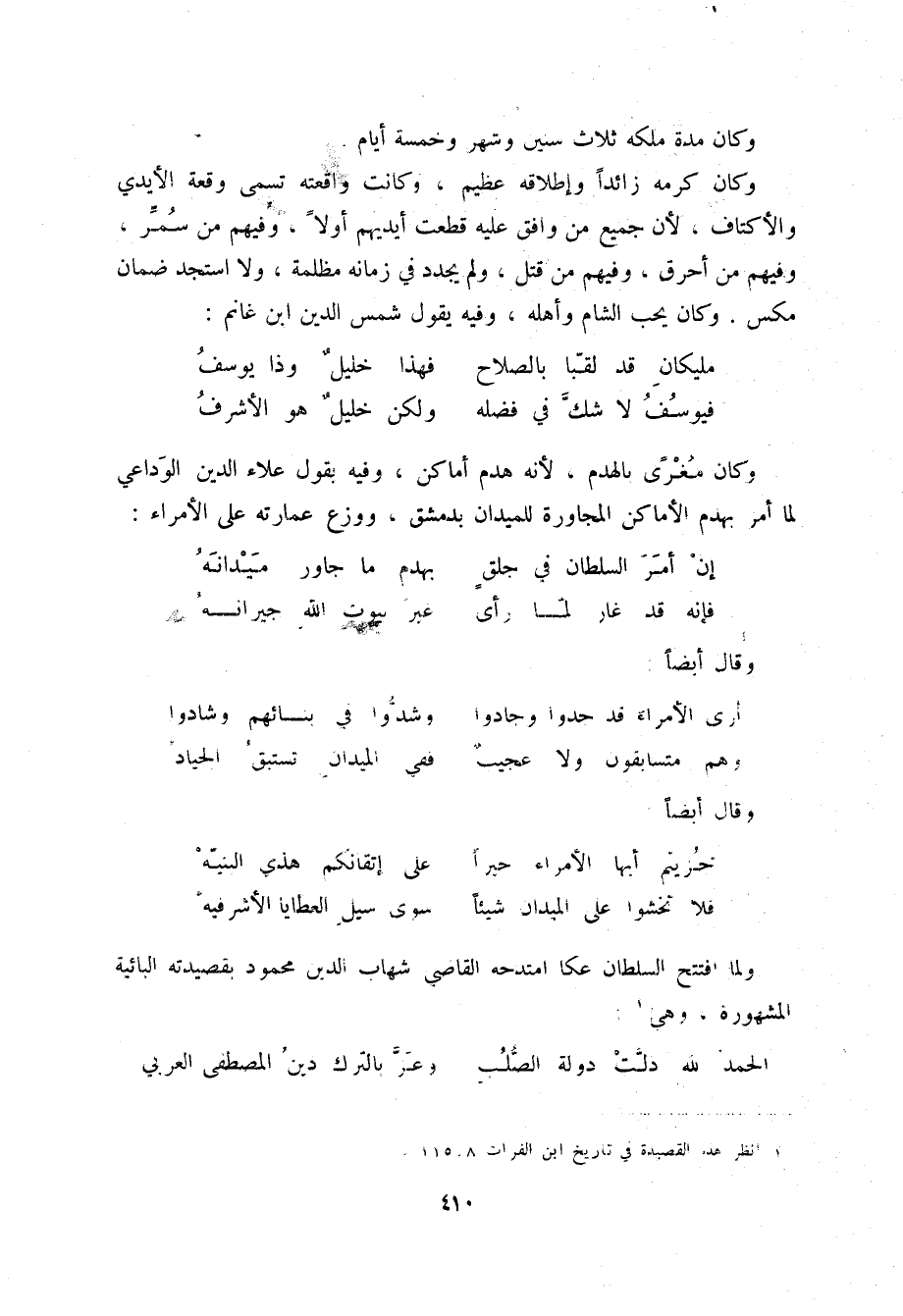 (1) انظر هذه القصيدة في تاريخ ابن الفرات 8: 115.