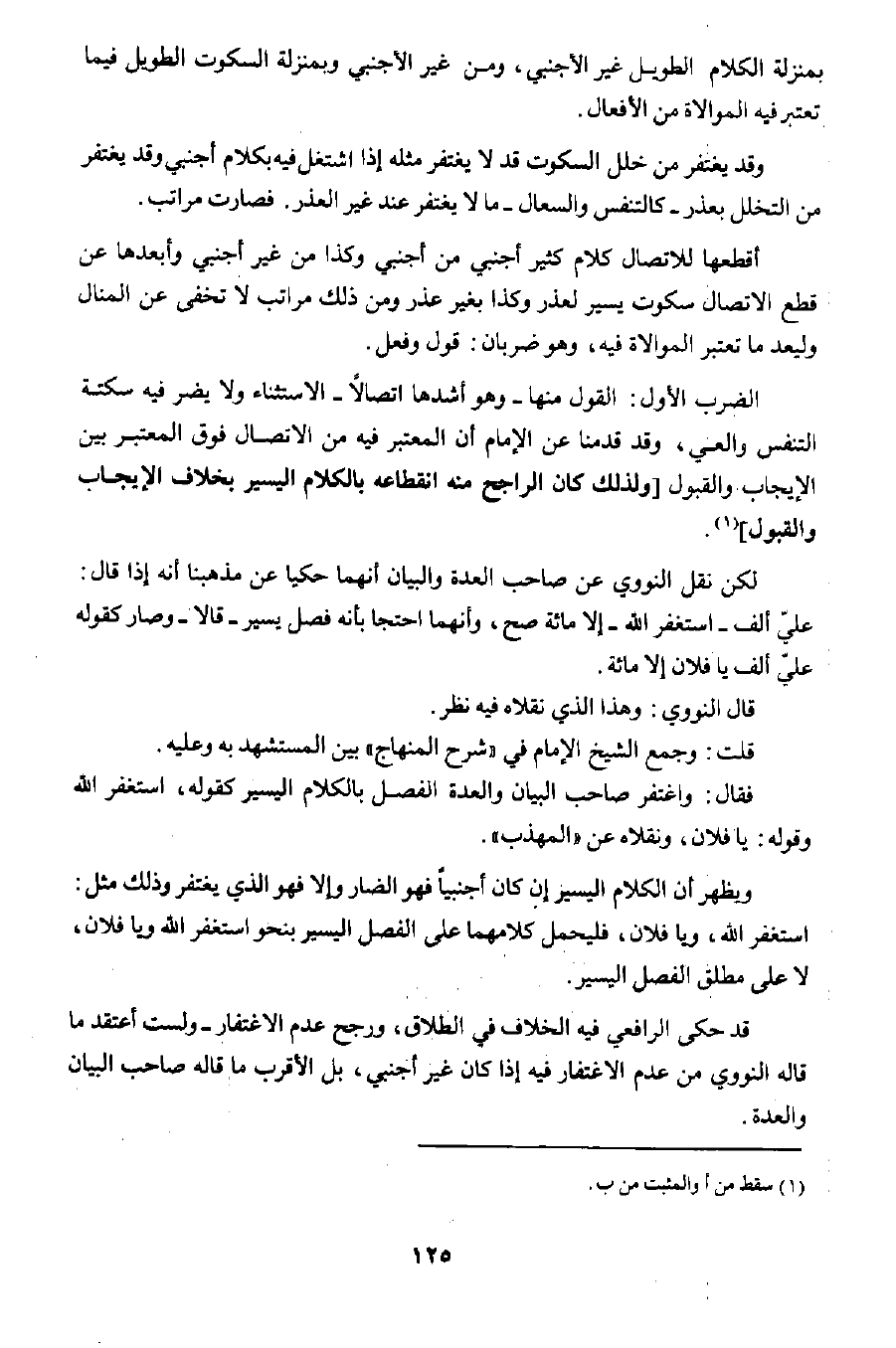 ويظهر أن الكلام اليسير إن كان أجنبيا فهو الضار؛ وإلا فهو الذي يغتفر وذلك مثل: استغفر الله، ويا فلان؛ فليحمل كلامهما على الفصل اليسير بنحو استغفر الله ويا فلان، لا على مطلق الفصل اليسير.