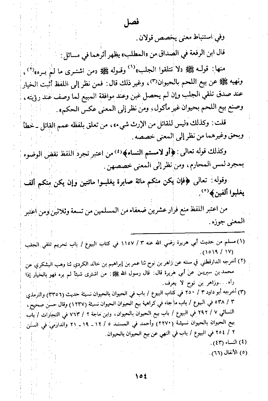 منها: قوله صلى الله عليه وسلم "لا تتلقوا الجلب" ١ وقوله صلى الله عليه وسلم "من اشترى ما لم يره" ٢، ونهيه صلى الله عليه سلم عن بيع اللحم بالحيوان٣، وغير ذلك قال: فمن نظر إلى اللفظ أثبت الخيار عند صدق تلقي الجلب وإن لم يحصل غبن وعند موافقة المبيع لما وصف عند رؤيته، وصنع بيع اللحم بحيوان غير مأكول، ومن نظر إلى المعنى عكس الحكم".