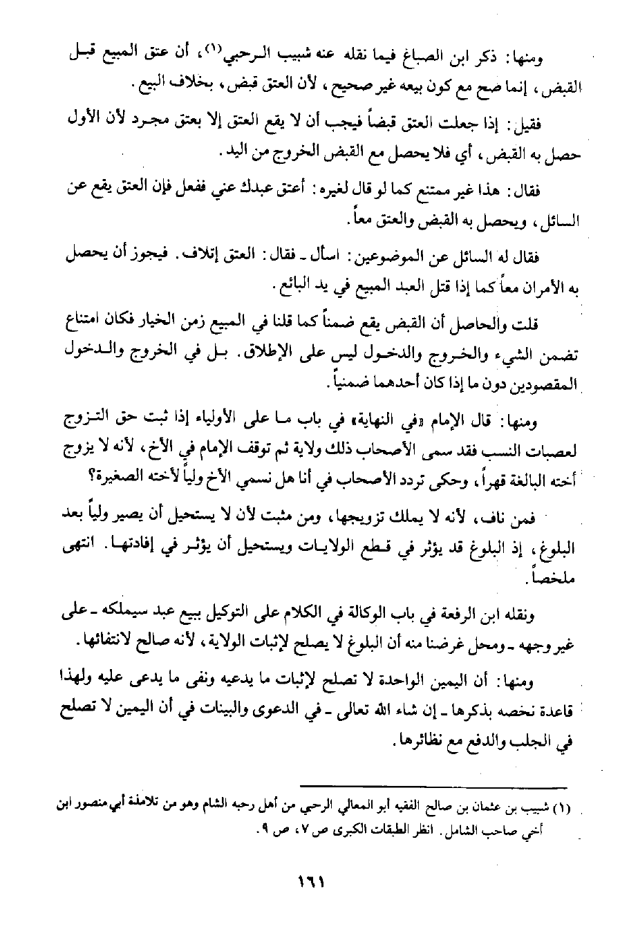 ١ شبيب بن عثمان صالح الفقيه أبو المعالي الرحبي من أهل رحبه الشام وهو من تلامذة أبي منصور ابن أخي صاحب الشامل. انظر الطبقات الكبرى ص٧، ص٩.
