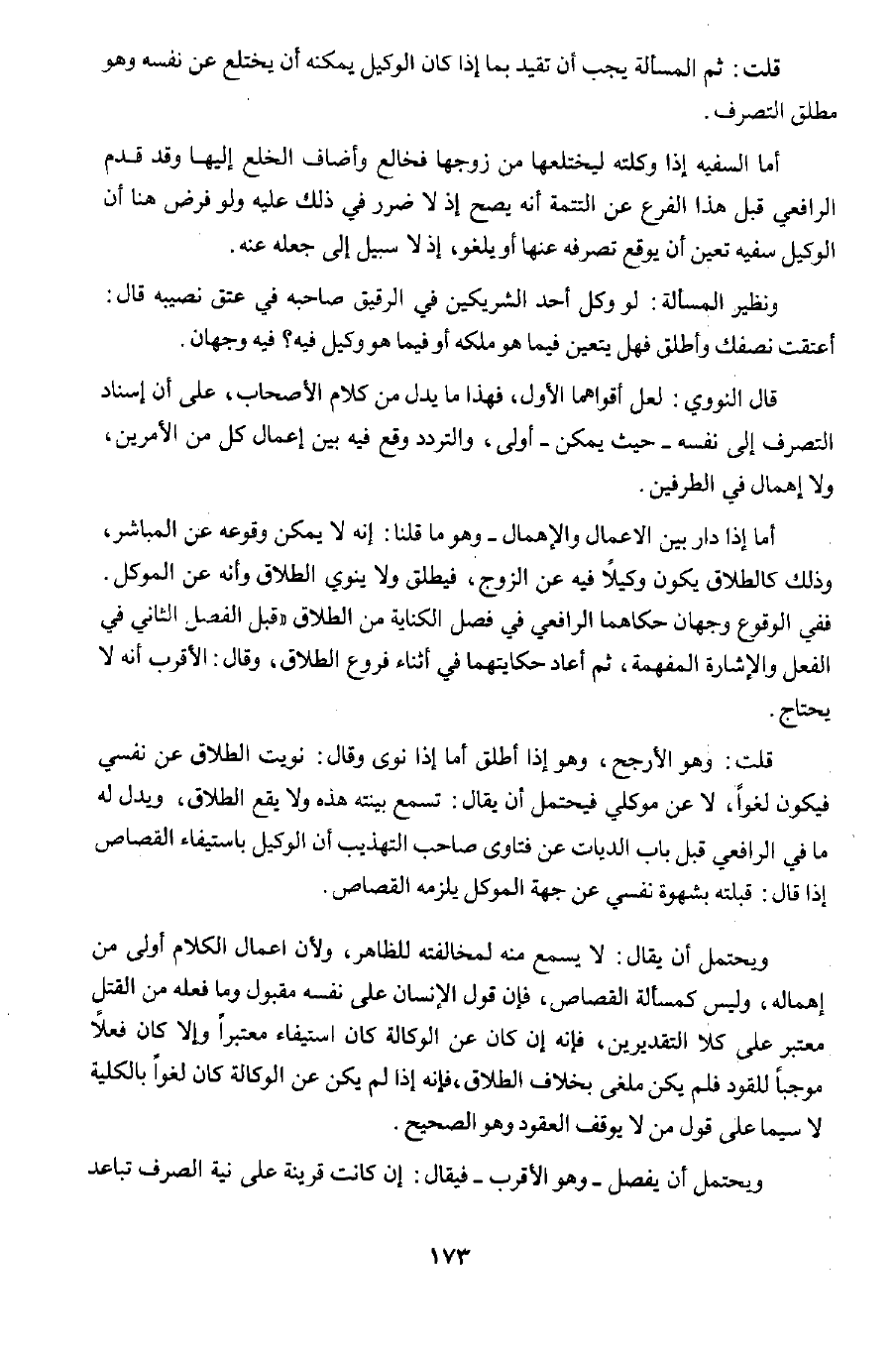 قلت: وهو الأرجح، وهو إذا أطلق أما إذا نوى وقال: نويت الطلاق عن نفسي فيكون لغوا، لا عن موكلي فيحتمل أن يقال: تسمع بينته هذه ولا يقع الطلاق، ويدل له ما في الرافعي قبل باب الديات عن فتاوى صاحب التهذيب أن الوكيل باستيفاء القصاص إذا قال: قبلته بشهوة نفسي عن جهة الموكل يلزمه القصاص.