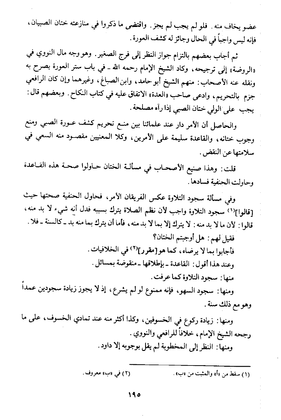 والحاصل أن الأمر دار عند علمائنا بيع منع تحريم كشف عورة الصبي ومنع وجوب ختانه، والقاعدة سليمة على الأمرين، وكلا المعنيين مقصود منه السعي في سلامتها عن النقض.