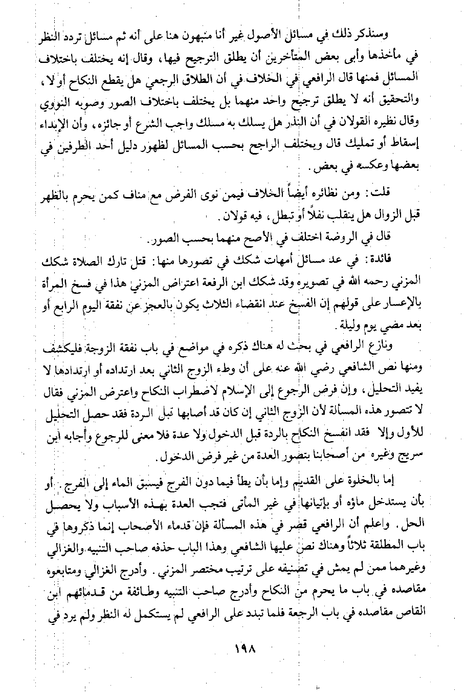 وسنذكر ذلك في مسائل الأصول؛ غير أنا منبهون هنا على أنه ثم مسائل تردد النظر في مأخذها وأبى بعض المتأخرين أن يطلق الترجيح فيها، وقال: إنه يختلف باختلاف المسائل؛ فمنها قال الرافعي في الخلاف في أن الطلاق الرجعي هل يقطع النكاح أو لا، والتحقيق أنه لا يطلق ترجيح واحد منهما بل يختلف باختلاف الصور وصوبه النووي، وقال نظيره القولان في أن النذر هل يسلك به مسلك واجب الشرع أو جائزه، وأن الإبداء إسقاط أو تمليك، قال: ويختلف الراجح بحسب المسائل لظهور دليل أحد الطرفين في بعضها وعكسه في بعض.