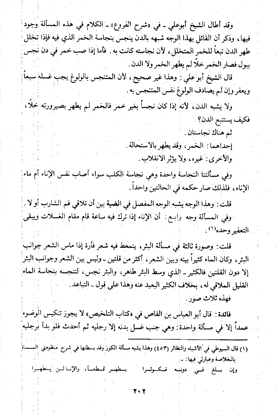 وقد أطال الشيخ أبو علي -في "شرح الفروع"- الكلام في هذه المسألة وجود فيها، وذكر أن القائل بهذا الوجه شبهه بالدن ينجس بنجاسة الخمر الذي فيه؛ فإذا تخلل طهر الدن تبعا للخمر المتخلل؛ لأن نجاسته كانت به. فأما إذا صب خمر في دن نجس ببول فصار الخمر خلا لم يطهر الخمر ولا الدن.
