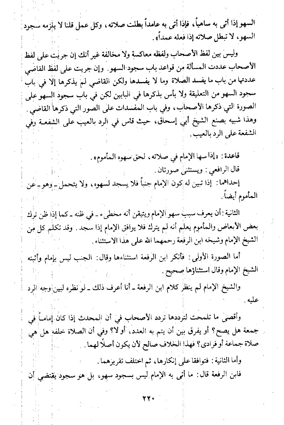 وليس بين لفظ الأصحاب ولفظه معاكسة ولا مخالفة غير أنك إن جريت على لفظ الأصحاب عددت المسألة من قواعد باب سجود السهو. وإن جريت على لفظ القاضي عددتها من باب ما يفسد الصلاة وما لا يفسدها؛ ولكن القاضي لم يذكرها إلا في باب سجود السهو من التعليقة ولا بأس بذكرها في البابين لكن في باب سجود السهو على الصورة التي ذكرها الأصحاب، وفي باب المفسدات على الصور التي ذكرها القاضي. وهذا شبيه بصنع الشيخ أبي إسحاق؛ حيث قاس في الرد بالعيب على الشفعة وفي الشفعة على الرد بالعيب.