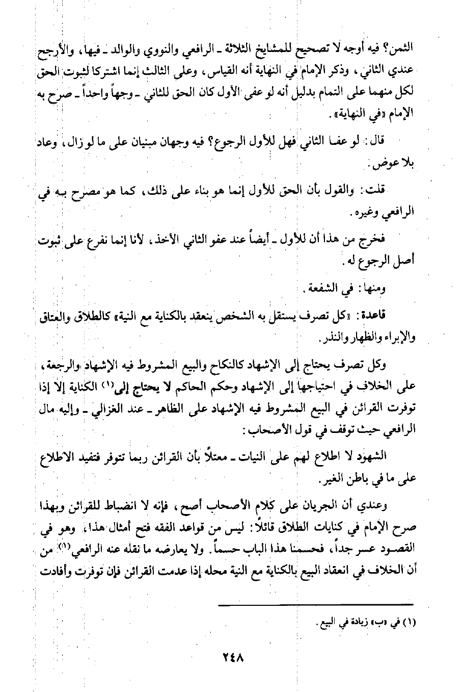 وكل تصرف يحتاج إلى الإشهاد كالنكاح والبيع المشروط فيه الإشهاد والرجعة، على الخلاف في احتياجها إلى الإشهاد وحكم الحاكم لا يحتاج إلى١ الكناية إلا إذا توفرت القرائن في البيع المشروط في الإشهاد على الظاهر -عند الغزالي- وإليه مال الرافعي حيث توقف في قول الأصحاب: