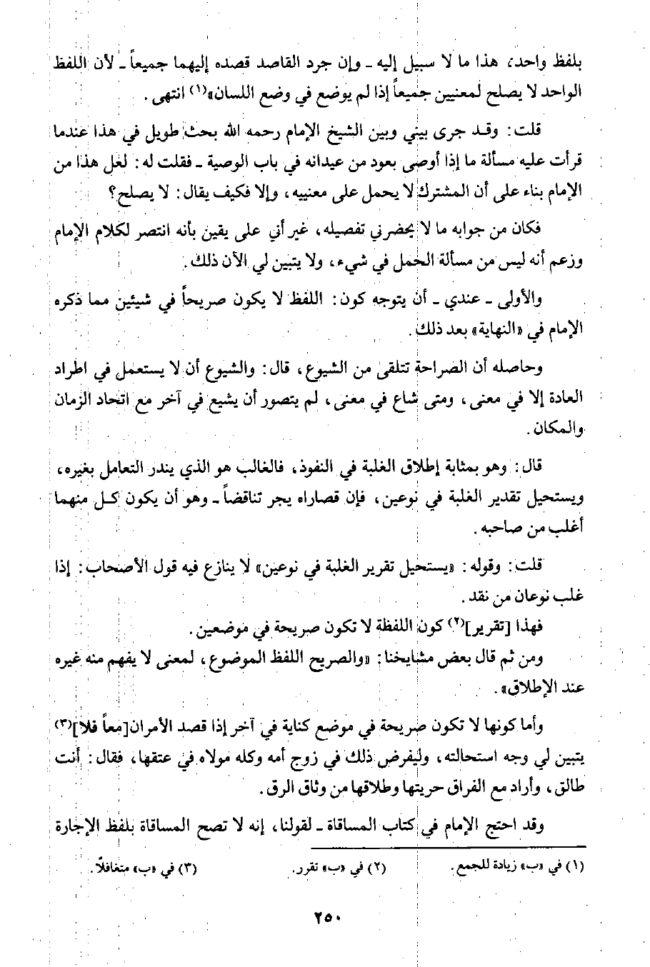 والأولى -عندي- أن يتوجه كون: اللفظ لا يكون صريحا في شيئين مما ذكره الإمام في "النهاية" بعد ذلك.