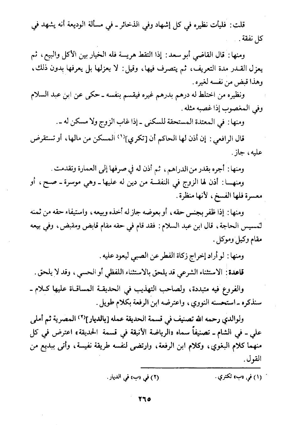 ولوالدي رحمه الله تصنيف في قسمة الحديقة عمله [بالديار] ٢ المصرية، ثم أملى علي -في الشام- تصنيفا سماه "الرياضة الأنيقة في قسمة الحديقة" اعترض في كل منهما كلام البغوي، وكلام ابن الرفعة، وارتضى لنفسه طريقة نفيسة، وأتى ببديع من القول.