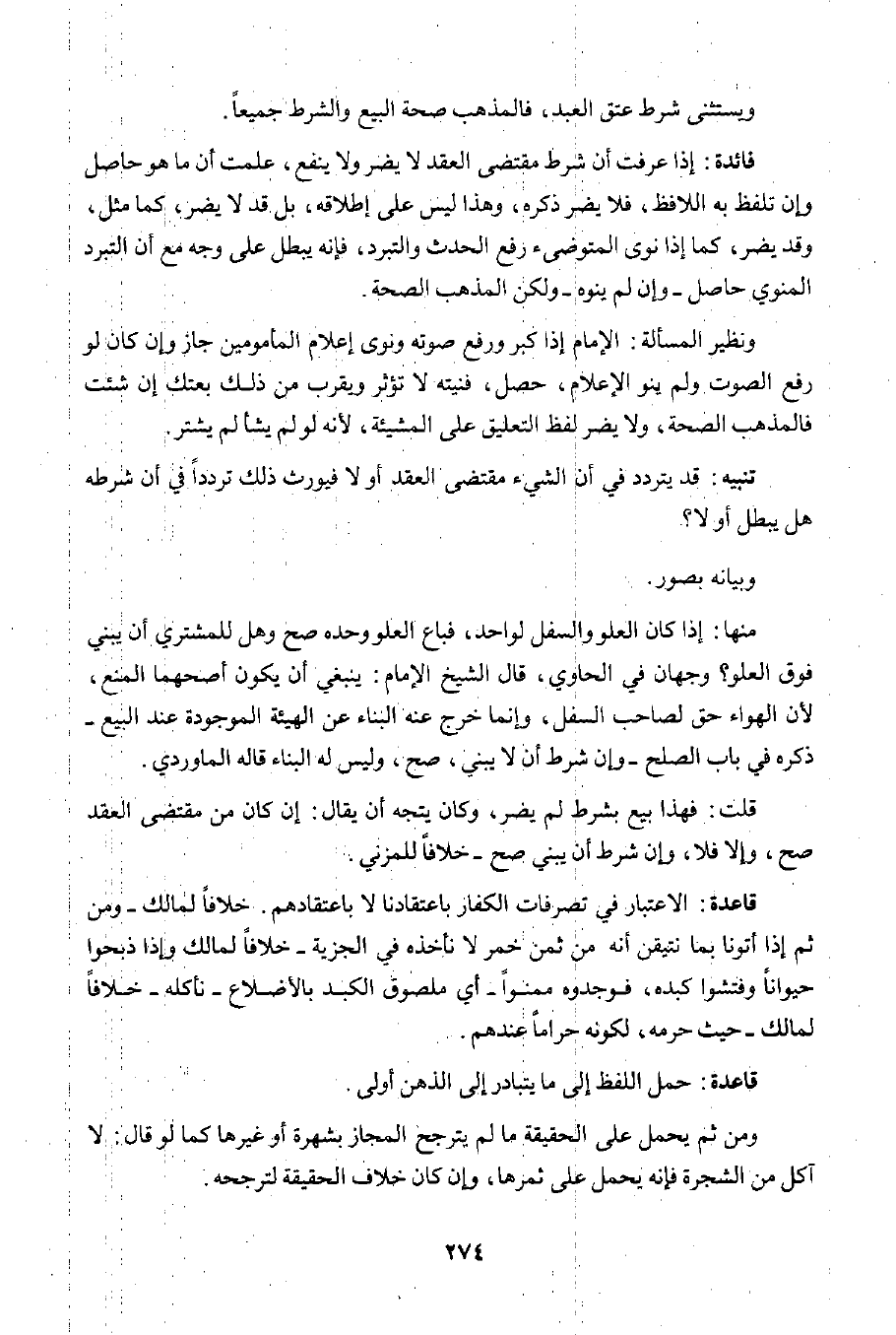 قاعدة: الاعتبار في تصرفات الكفار باعتقادنا لا باعتقادهم. خلافا لمالك -ومن ثم إذا أتونا بما نتيقن أنه من ثمن خمر لا نأخذه في الجزية- خلافا لمالك وإذا ذبحوا حيوانا وفتشوا كبده؛ فوجدوه ممنوا- أي ملصوق الكبد بالأضلاع -نأكله- خلافا لمالك- حيث حرمه، لكونه حراما عندهم.