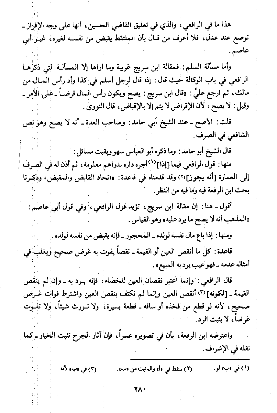 أقول - هنا: إن مقالة ابن سريج، تؤيد قول الرافعي، وفي قول أبي عاصم: "المذهب أنه لا يصح ما يرد عليه" وهو القياس.