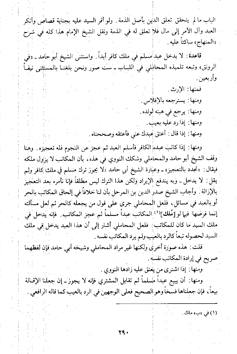 قاعدة: لا يدخل عبد مسلم في ملك كافر أبدا. واستثنى الشيخ أبو حامد -"في الرونق" وتبعه تلميذه المحاملي في اللباب- ست صور ونحن بلغنا بالمستثنى نيفا وأربعين.