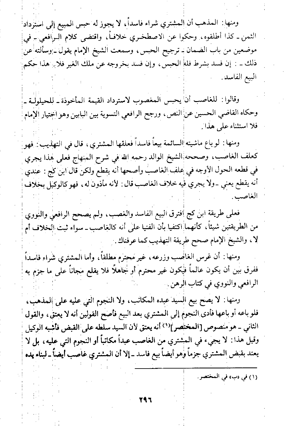 ومنها: أن غرس الغاصب وزرعه، غير محترم مطلقا، وأما المشتري شراء فاسدا ففرق بين أن يكون عالما فيكون غير محترم أو جاهلا فلا يقلع مجانا على ما جزم به الرافعي والنووي في كتاب الرهن.