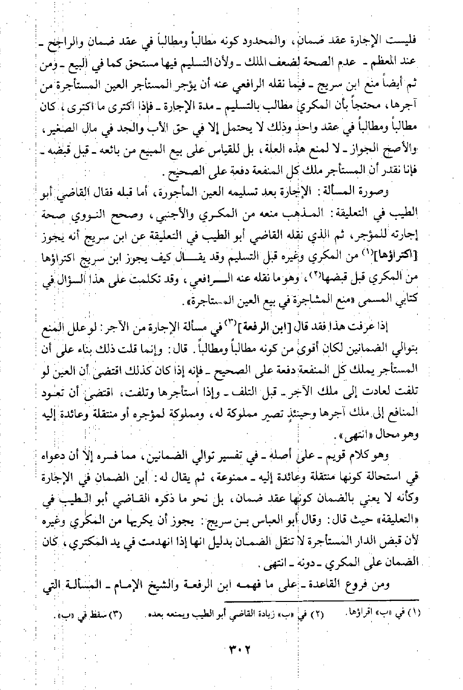 وهو كلام قويم -على أصله- في تفسير توالي الضمانينن مما فسره؛ إلا أن دعواه في استحالة كونها منتقلة وعائدة إليه -ممنوعة، ثم يقال له: أين الضمان في الإجارة وكأنه لا يعني بالضمان كونها عقد ضمان؛ بل نحو ما ذكره القاضي أبو الطيب في "التعليقة" حيث قال: وقال أبو العباس بن سريج: يجوز أن يكريها من المكري وغيره لأن قبض الدار المستأجرة لا تنقل الضمان بدليل أنها إذا انهدمت في يد المكتري، كان الضمان على المكري -دونه- انتهى.