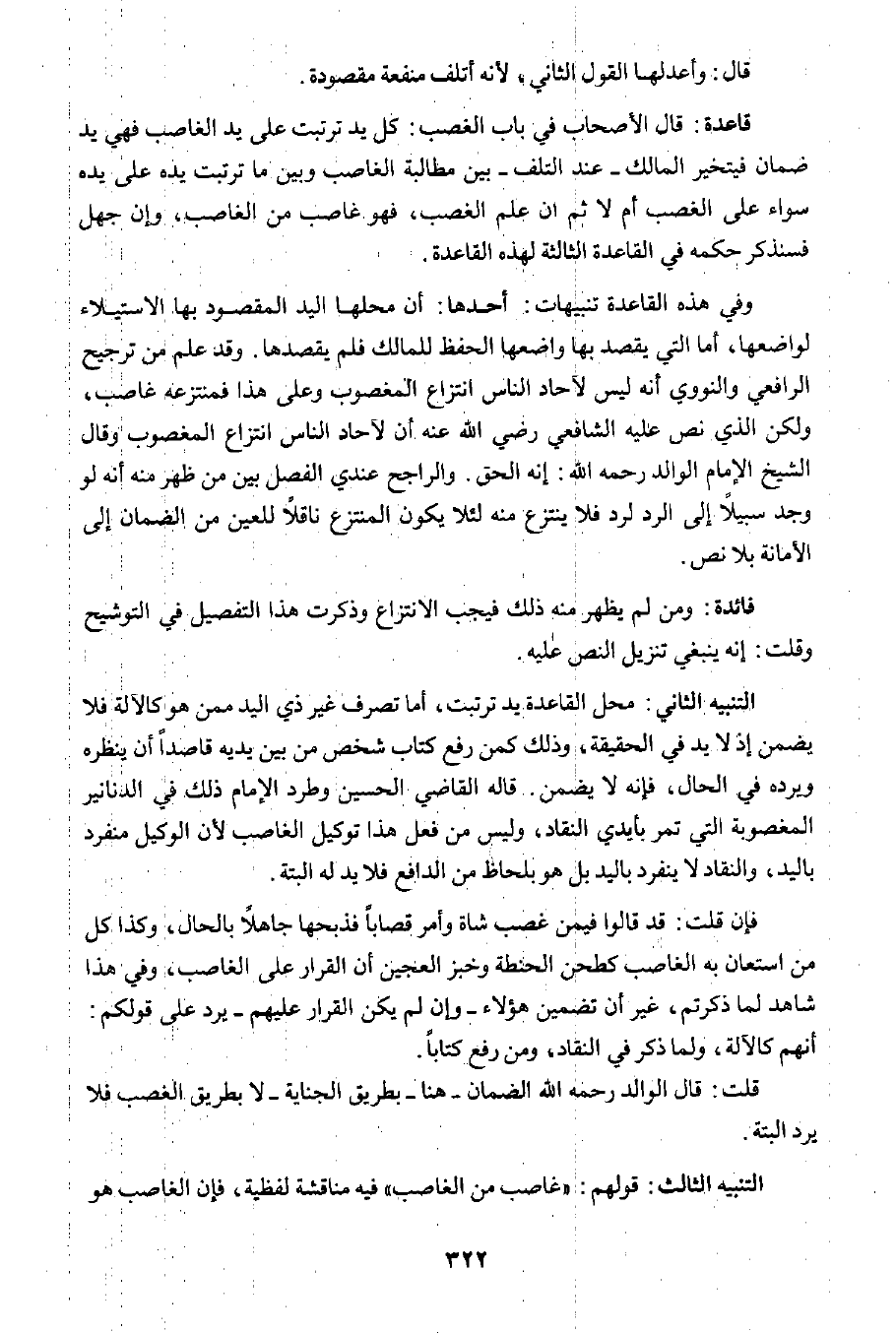 قاعدة: قال الأصحاب في باب الغصب: كل يد ترتبت على يد الغاصب فهي يد ضمان فيتخير المالك -عند التلف- بين مطالبة الغاصب وبين ما ترتبت يده على يده سواء على الغصب أم لا ثم إن علم الغصب، فهو غاصب من الغاصب، وإن جهل فسنذكر حكمه في القاعدة الثالثة لهذه القاعدة.
