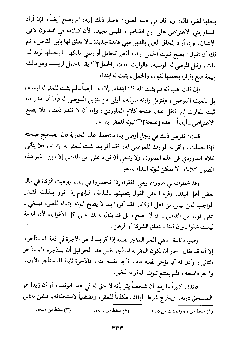قلت: نفرض ذلك في رجل أوصى بما ستحمله هذه الجارية فإن الصحيح صحته فإذا حملت، وأقر به الوارث للموصى له؛ فقد أقر بما يثبت للمقر له ابتداء؛ فلا يتأتى كلام الماوردي في هذه الصورة، ولا ينبغي أن نورد على ابن القاص إلا دين -غير هذه الصور الثلاث- لا يمكن ثبوته ابتداء للمقر.
