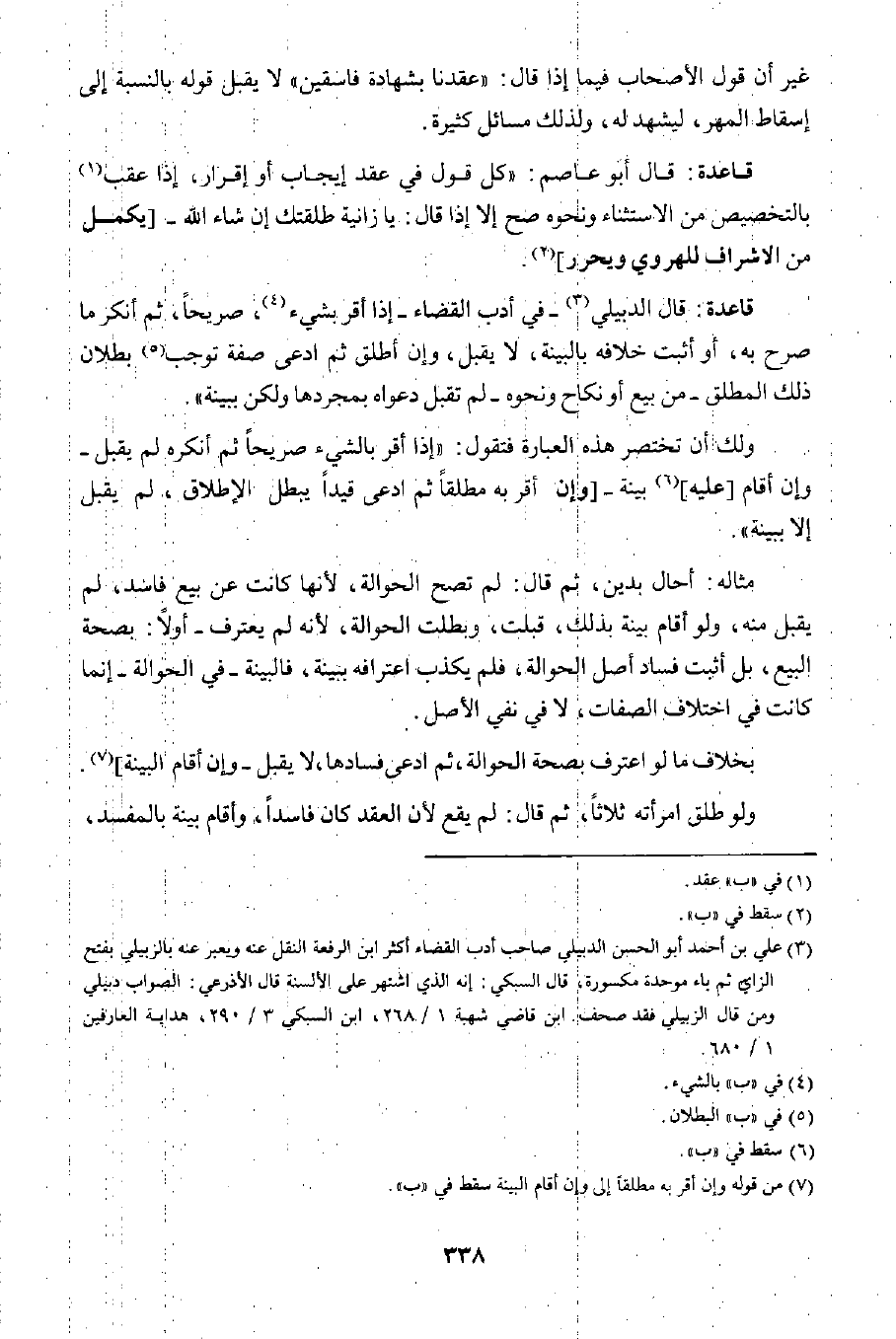 قاعدة: قال الدبيلي٣ -في أدب القضاء- إذا أقر بشيء٤ صريحا، ثم أنكر ما صرح به، أو أثبت خلافه بالبينة، لا يقبل، وإن أطلق ثم ادعى صفة توجب٥ بطلان ذلك المطلق -من بيع أو نكاح ونحوه- لم تقبل دعواه بمجردها ولكن ببينة".