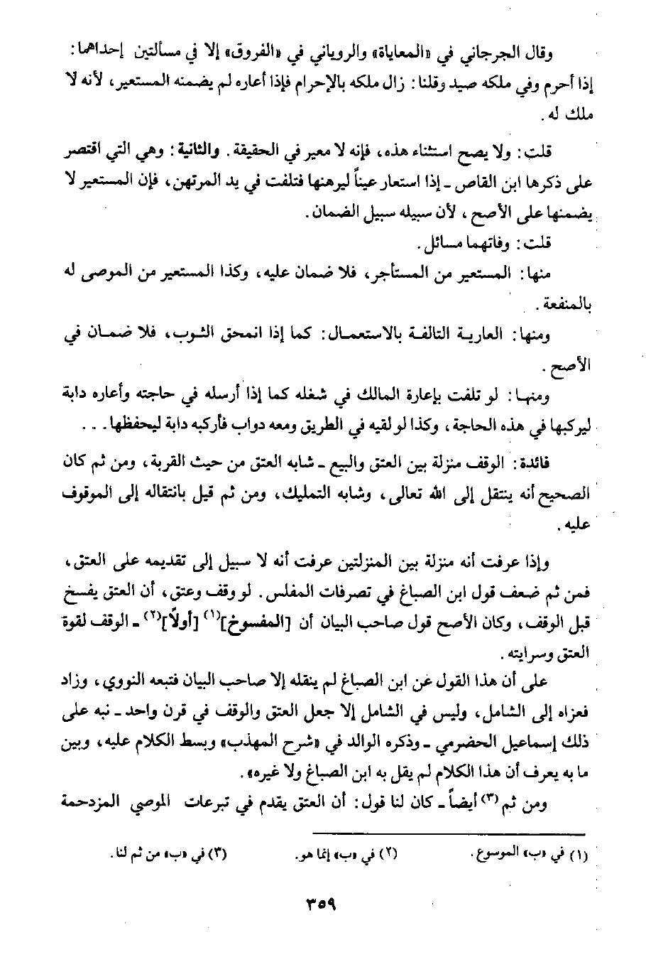 وإذا عرفت أنه منزلة بين المنزلتين عرفت أنه لا سبيل إلى تقديمه على العتق؛ فمن ثم ضعف قول ابن الضباغ في تصرفات المفلس. لو وقف وعتق، أن العتق يفسخ قبل الوقف، وكان الأصح قول صاحب البيان أن [المفسوخ] ١ [أولا] ٢- الوقف لقوة العتق وسرايته.
