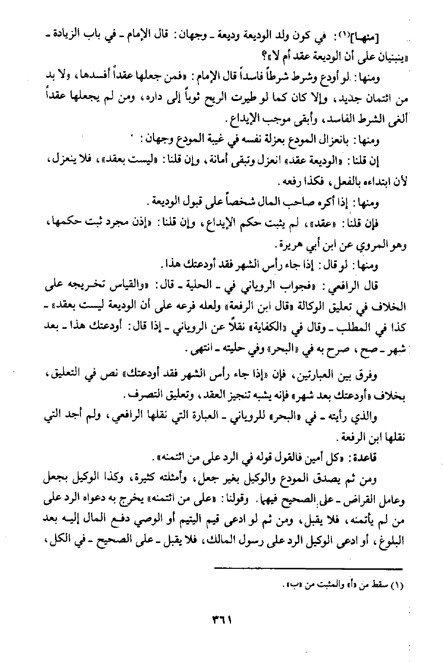 [منها] ١: في كون ولد الوديعة وديعة وجهان: قال الإمام -في باب الزيادة- "ينبنيان على أن الوديعة عقد أم لا"؟