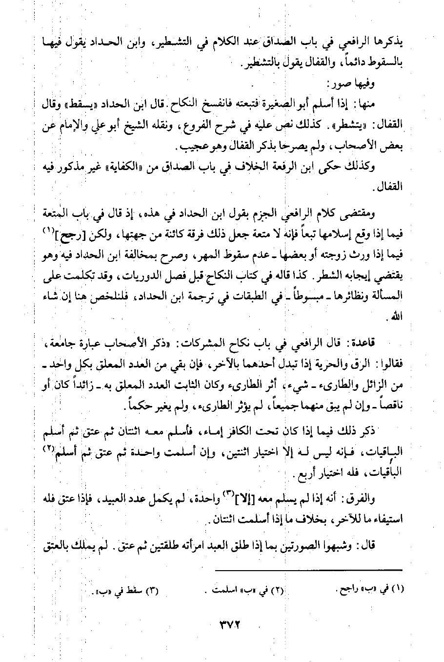 قاعدة: قال الرافعي في باب نكاح المشركات: "ذكر الأصحاب عبارة جامعة؛ فقالوا: الرق والحرية إذا تبدل أحدهما بالآخرة؛ فإن بقي من العدد المعلق بكل واحد -من الزائل والطارئ- شيء، أثر الطارئ وكان الثابت العدد المعلق به -زائدا كان أو ناقصا- وإن لم يبق منهما جميعا، لم يؤثر الطارئ، ولم يغير حكما.