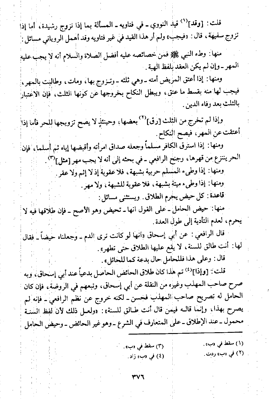 قلت: [وإذا] ٤ تم هذا كان طلاق الحائض الحاصل بدعيا عند أبي إسحاق، وبه صرح صاحب المهذب وغيره من النقلة عن أبي إسحاق، وتبعهم في الروضة؛ فإن كان الحامل له تصريح صاحب المهذب فحسن -لكنه خروج عن نظم الرافعي- فإنه لم يصرح بهذا؛ وإنما قاله فيمن قال أنت طالق للسنة": "ولعل ذلك لأن لفظ السنة محمول -عند الإطلاق- على المتعارف في الشرع -وهو غير حائض- وحيض الحامل