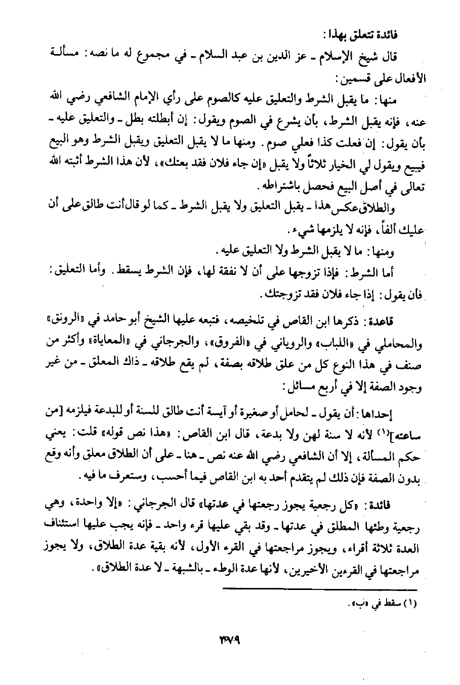 قال شيخ الإسلام -عز الدين عبد عبد السلام- في مجموع له ما نصه: مسألة الأفعال على قسمين: