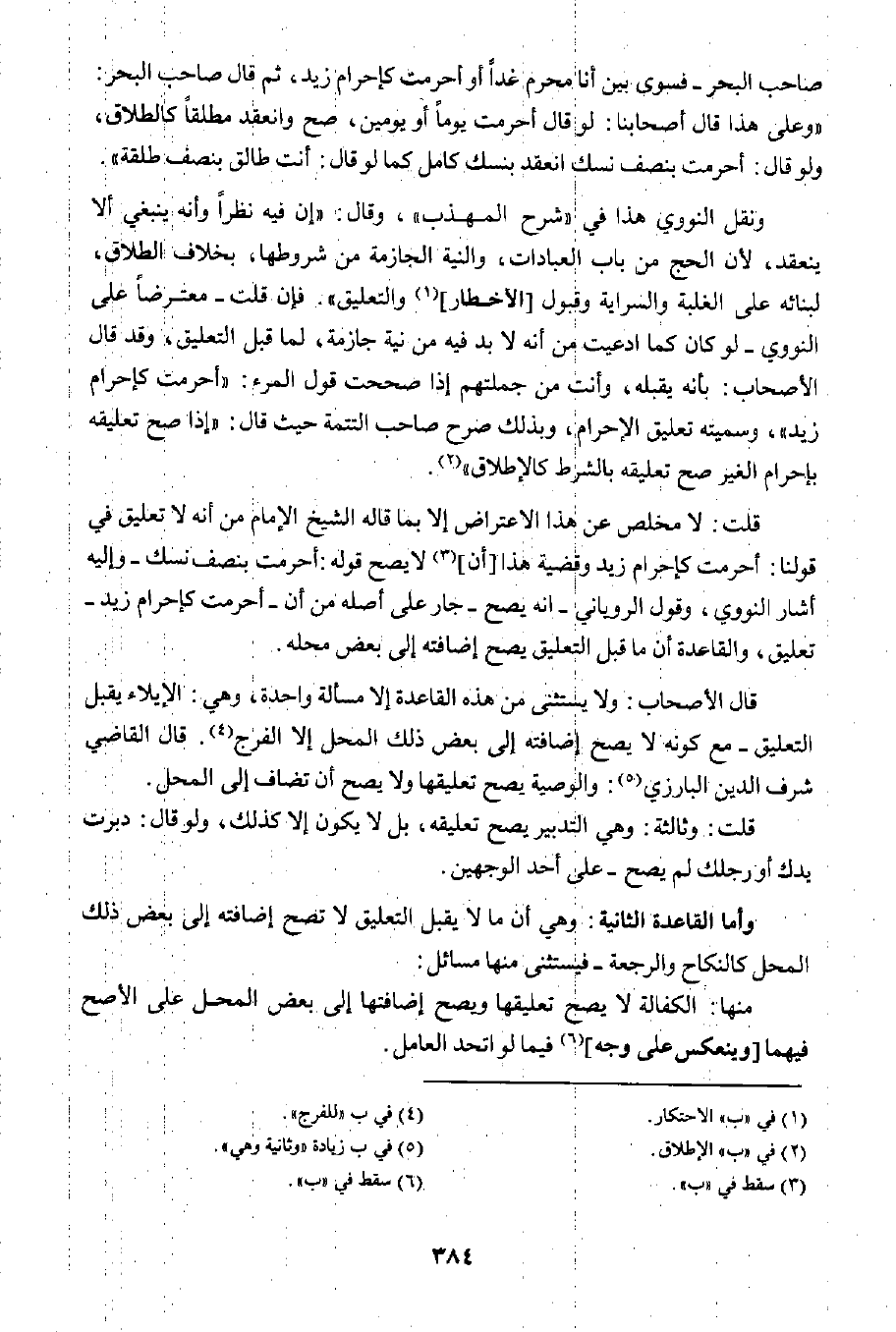 ونقل النووي هذا في "شرح المهذب"، وقال: "إن فيه نظرًا، وأنه ينبغي ألا ينعقد؛ لأن الحج من باب العبادات، والنية الجازمة من شرطها، بخلاف الطلاق، لبنائه على الغلبة والسراية وقبول [الأخطار] ١ والتعليق". فإن قلت -معترضا على النووي- لو كان كما ادعيت من أنه لا بد فيه من نية جازمة، لما قبل التعليق، وقد قال الأصحاب: بأنه يقبله، وأنت من جملتهم إذا صححت قول المرء: "أحرمت كإحرام زيد"، وسميته تعليق الإحرام، وبذلك صرح صاحب التتمة؛ حيث قال: "إذا صح تعليقه بإحرام الغير صح تعليقه بالشرط كالإطلاق"٢.