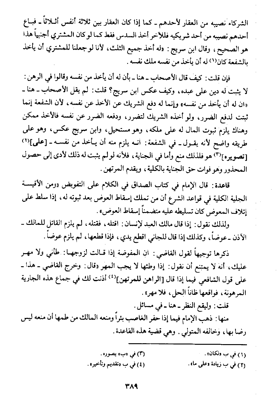 قاعدة: قال الإمام في كتاب الصداق في الكلام على التفويض "ومن الأقيسة الجلية الكلية في قواعد الشرع أن من تملك إسقاط العوض بعد ثبوته له، إذا سقط على إتلاف المعوض كان تسليطه عليه متضمنا إسقاط العوض".