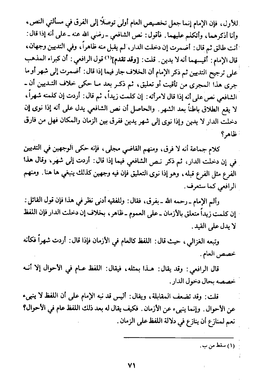 وألم الإمام –رحمه الله- بفرق، فقال: وللفقيه أدنى نظر في هذا فإن قول القائل: إن كلمت زيدا متعلق بالأزمان –على العموم- ظاهر، بخلاف إن دخلت الدار فإن اللفظ لا يدل على القيد.