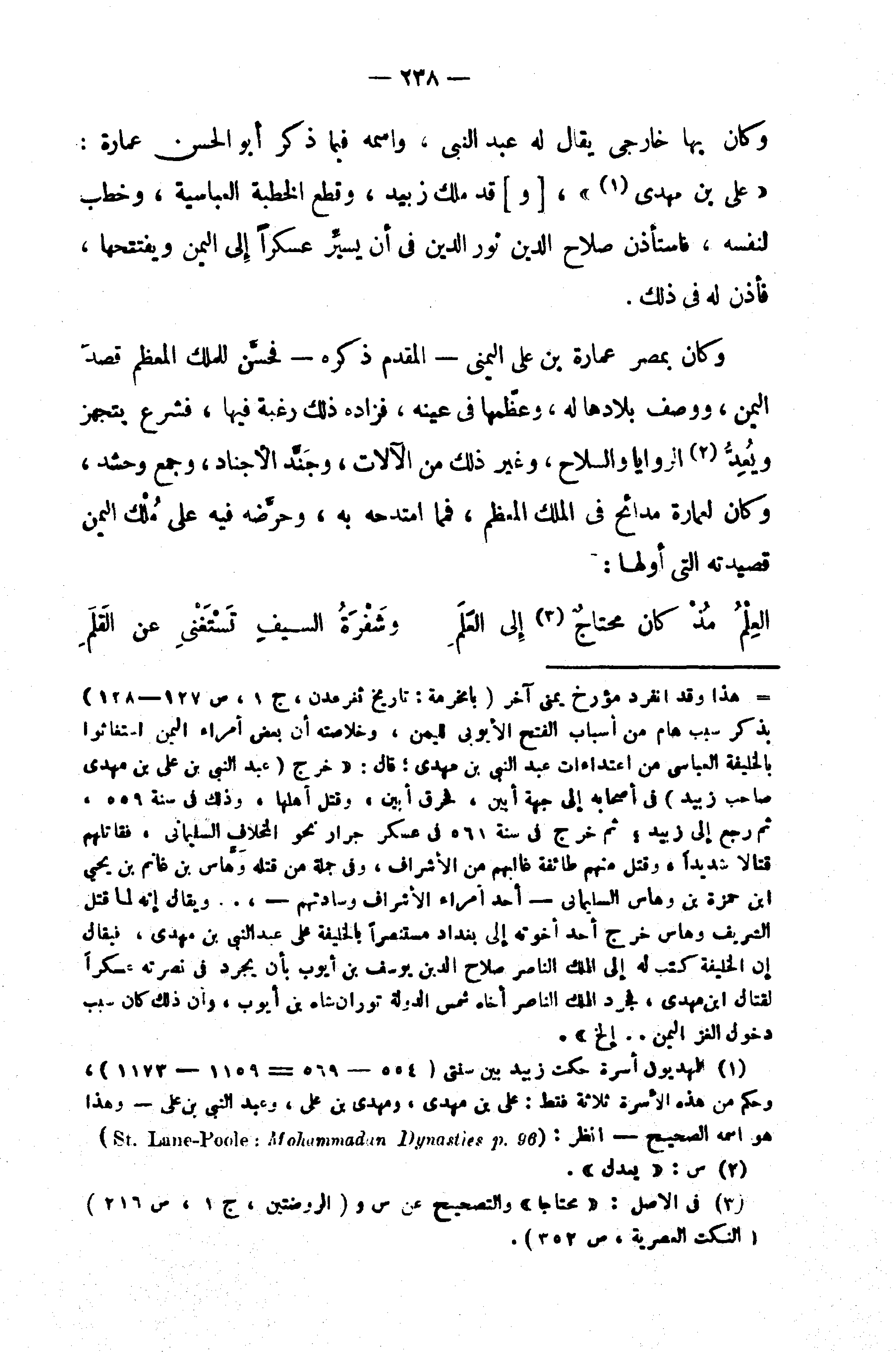 (¬1) المهديون أسرة حكمت زبيد بين سنتى (554 - 569 = 1159 - 1173)، وحكم من هذه الأسرة ثلاثة فقط: على بن مهدى، ومهدى بن على، وعبد النبى بن على - وهذا هو اسمه الصحيح - انظر: (St .Lane - Poole : Mohammadan Dynasties P. 96).