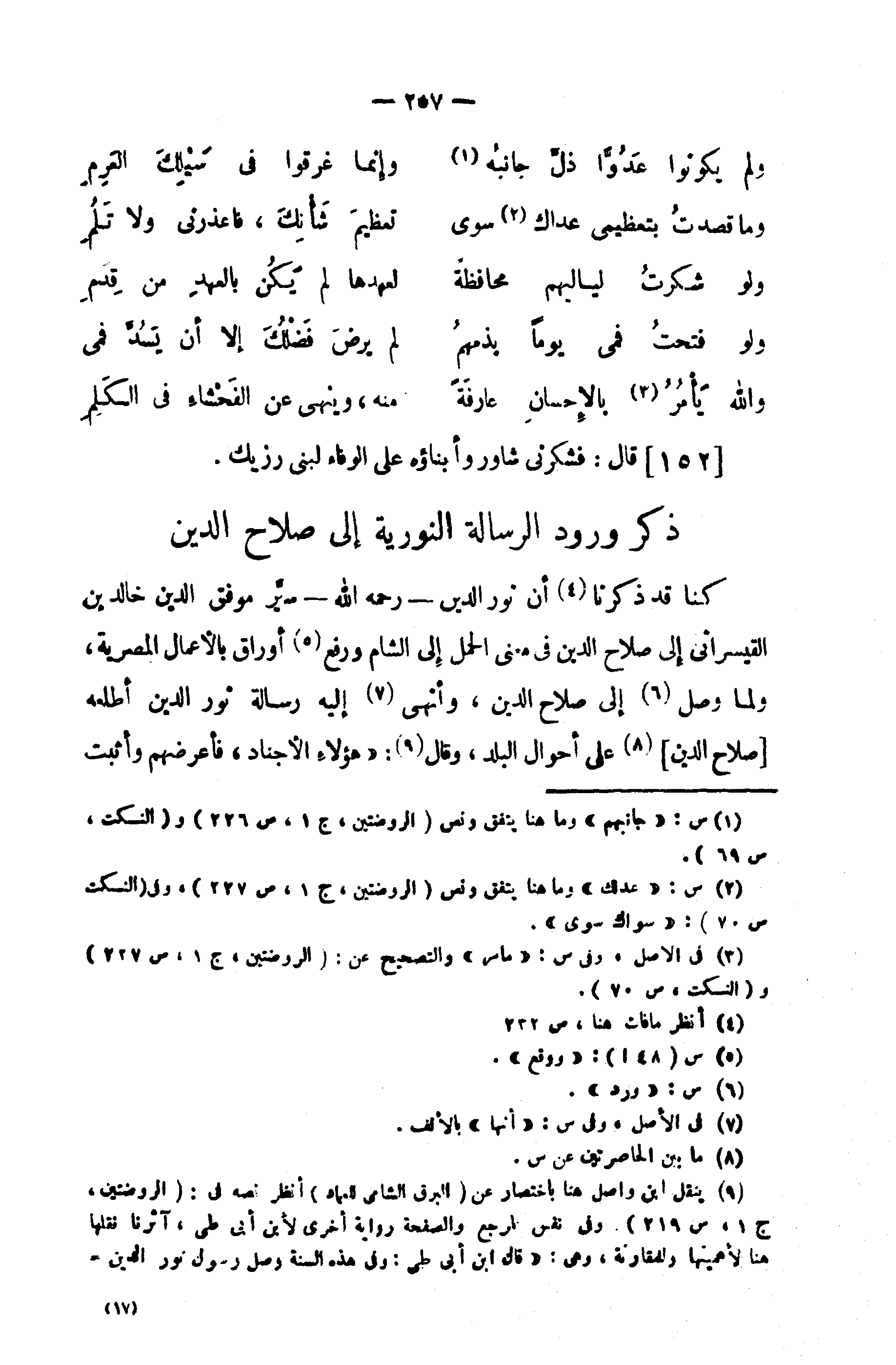 ذكر ورود الرسالة النورية إلى صلاح الدين
