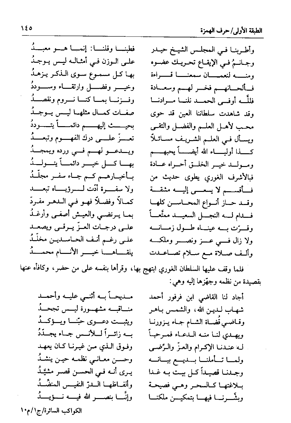 فبالأشرف الغوري يطوى حديث من ... بأخبارهم كم جاء سفر مجلد