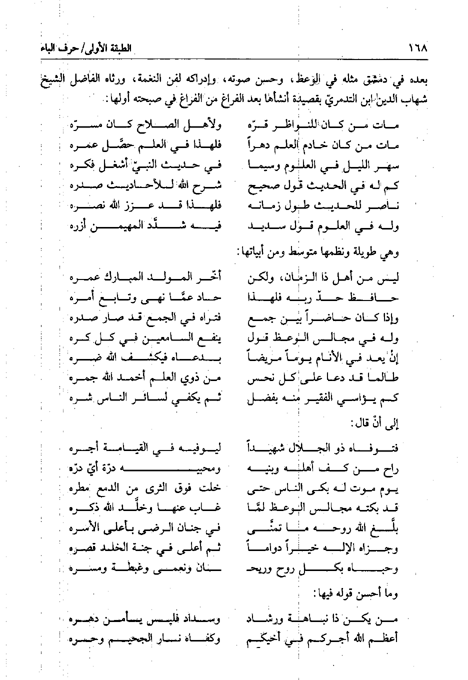 بعده في دمشق مثله في الوعظ، وحسن صوته، وإدراكه لفن النغمة، ورثاه الفاضل الشيخ شهاب الدين ابن التدمري بقصيدة أنشأها بعد الفراغ من الفراغ في صبحته أولها: