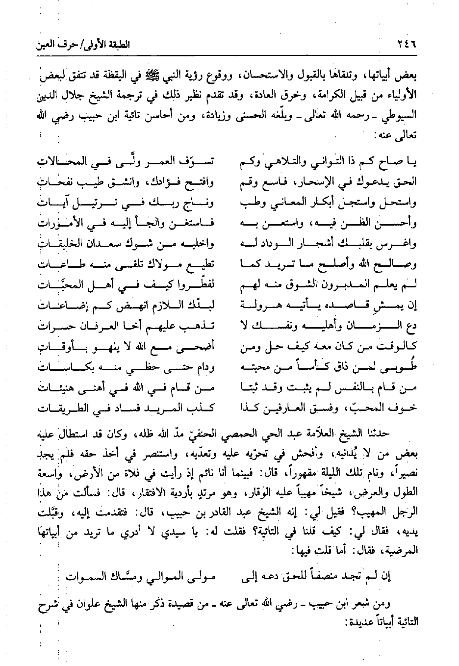 ومن شعر ابن حبيب - رضي الله تعالى عنه - من قصيدة ذكر منها الشيخ علوان في شرح التائية أبياتاً عديدة: