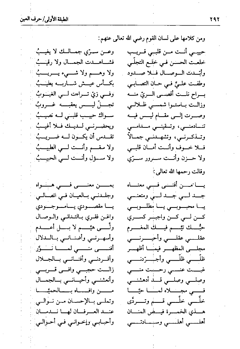 ومن كلامها على لسان القوم رضي الله تعالى عنهم: