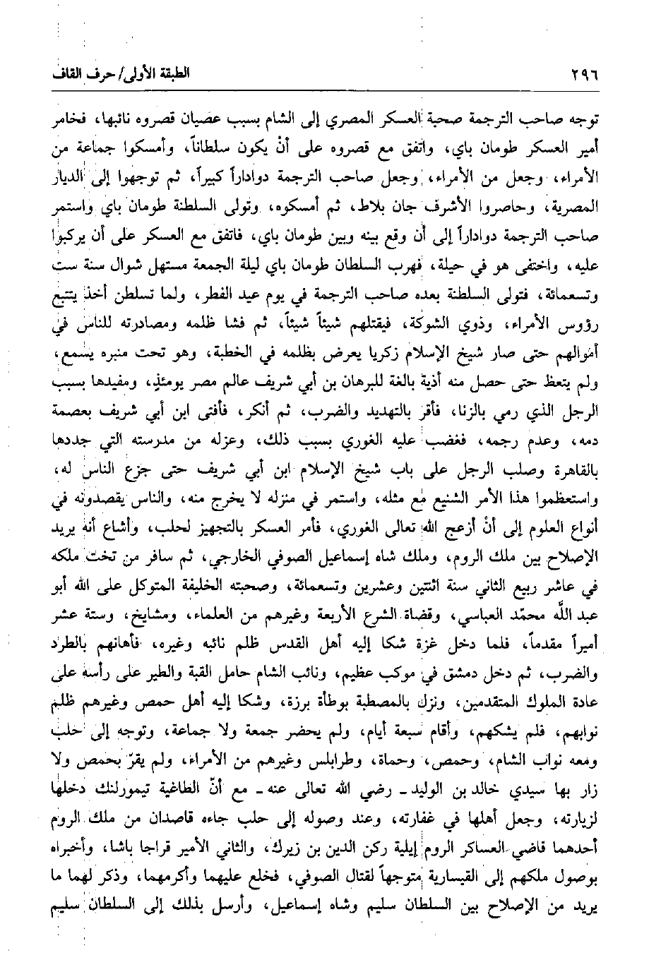 توجه صاحب الترجمة صحبة العسكر المصري إلى الشام بسبب عصيان قصروه نائبها، فخامر أمير العسكر طومان باي، واتفق مع قصروه على أن يكون سلطاناً، وأمسكوا جماعة من الأمراء، وجعل من الأمراء، وجعل صاحب الترجمة دواداراً كبيراً، ثم توجهوا إلى الديار المصرية، وحاصروا الأشرف جان بلاط، ثم أمسكوه، وتولى السلطنة طومان باي واستمر صاحب الترجمة دواداراً إلى أن وقع بينه وبين طومان باي، فاتفق مع العسكر على أن يركبوا عليه، واختفى هو في حيلة، فهرب السلطان طومان باي ليلة الجمعة مستهل شوال سنة ست وتسعمائة، فتولى السلطنة بعده صاحب الترجمة في يوم عيد الفطر، ولما تسلطن أخذ يتتبع رؤوس الأمراء، وذوي الشوكة، فيقتلهم شيئاً شيئاً، ثم فشا ظلمه ومصادرته للناس في أموالهم حتى صار شيخ الإسلام زكريا يعرض بظلمه في الخطبة، وهو تحت منبره يسمع، ولم يتعظ حتى حصل منه أذية بالغة للبرهان بن أبي شريف عالم مصر يومئذ، ومفيدها بسبب الرجل الذي رمي بالزنا، فأقر بالتهديد والضرب، ثم أنكر، فأفتى ابن أبي شريف بعصمة دمه، وعدم رجمه، فغضب عليه الغوري بسبب ذلك، وعزله من مدرسته التي جددها بالقاهرة وصلب الرجل على باب شيخ الإسلام ابن أبي شريف حتى جزع الناس له، واستعظموا هذا الأمر الشنيع مع مثله، واستمر في منزله لا يخرج منه، والناس يقصدونه في أنواع العلوم إلى أن أزعج الله تعالى الغوري، فأمر العسكر بالتجهيز لحلب، وأشاع أنه يريد الإصلاح بين ملك الروم، وملك شاه إسماعيل الصوفي الخارجي، ثم سافر من تخت ملكه في عاشر ربيع الثاني سنة اثنتين وعشرين وتسعمائة، وصحبته الخليفة المتوكل على الله أبو عبد الله محمد العباسي، وقضاة الشرع الأربعة وغيرهم من العلماء، ومشايخ، وستة عشر أميراً مقدماً، فلما دخل غزة شكا إليه أهل القدس ظلم نائبه وغيره، فأهانهم بالطرد والضرب، ثم دخل دمشق في موكب عظيم، ونائب الشام حامل القبة والطير على رأسه على عادة الملوك المتقدمين، ونزل بالمصطبة بوطأة برزة، وشكا إليه أهل حمص وغيرهم ظلم نوابهم، فلم يشكهم، وأقام سبعة أيام، ولم يحضر جمعة ولا جماعة، وتوجه إلى حلب ومعه نواب الشام، وحمص، وحماة، وطرابلس وغيرهم من الأمراء، ولم يقر بحمص ولا زار بها سيدي خالد بن الوليد - رضي الله تعالى عنه - مع أن الطاغية تيمورلنك دخلها لزيارته، وجعل أهلها في غفارته، وعند وصوله إلى حلب جاءه قاصدان من ملك الروم أحدهما قاضي العساكر الروم إيلية ركن الدين بن زيرك، والثاني الأمير قراجا باشا، وأخبراه بوصول ملكهم إلى القيسارية متوجهاً لقتال الصوفي، فخلع عليهما وأكرمهما، وذكر لهما ما يريد من الإصلاح بين السلطان سليم وشاه إسماعيل، وأرسل بذلك إلى السلطان سليم