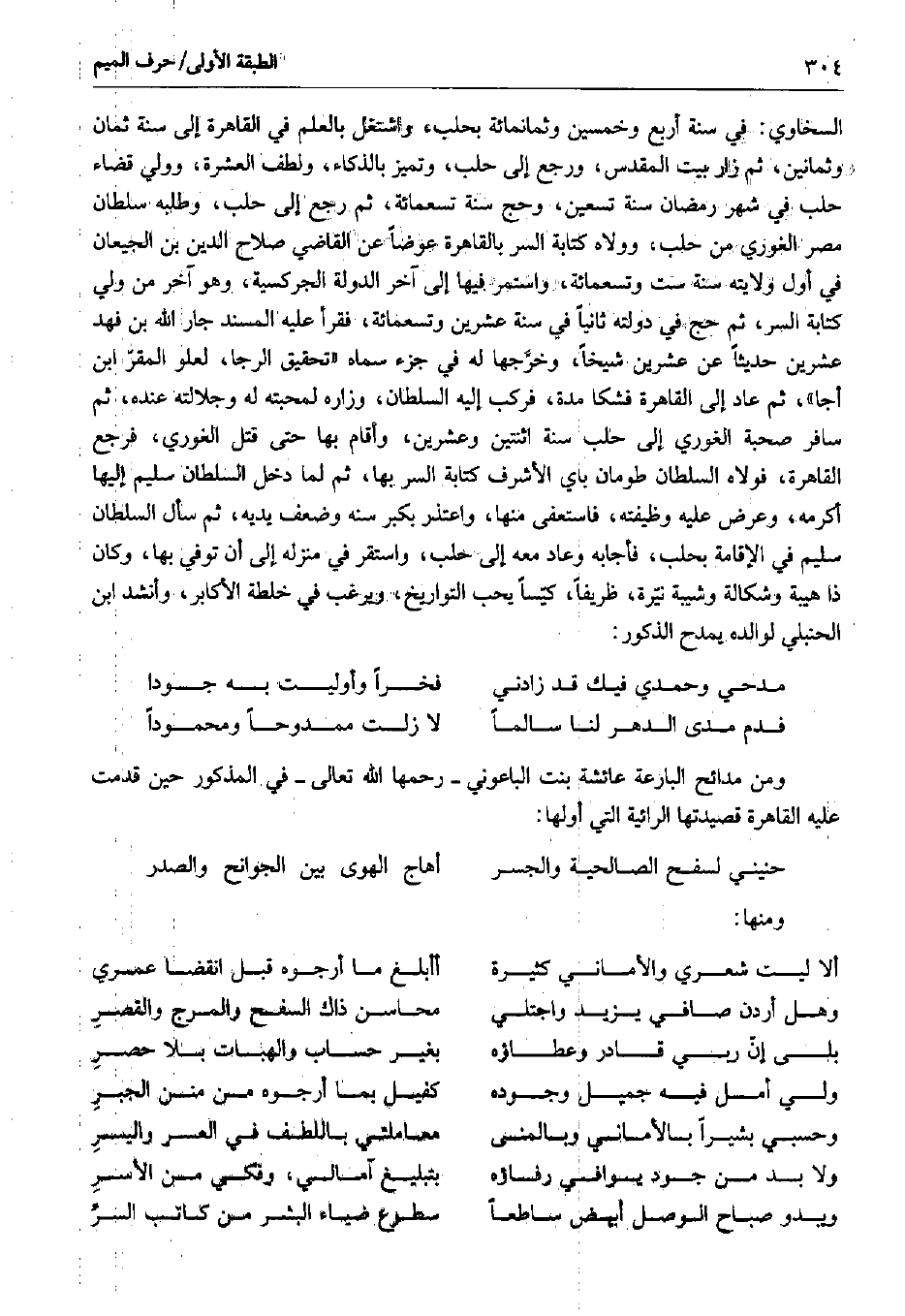 ومن مدائح البارعة عائشة بنت الباعوني - رحمها الله تعالى - في المذكور حين قدمت عليه القاهرة قصيدتها الرائية التي أولها: