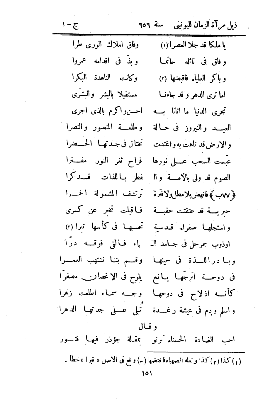 يا ملكاً قد جلا العصرا ... وفاق أملاك الورى طرا