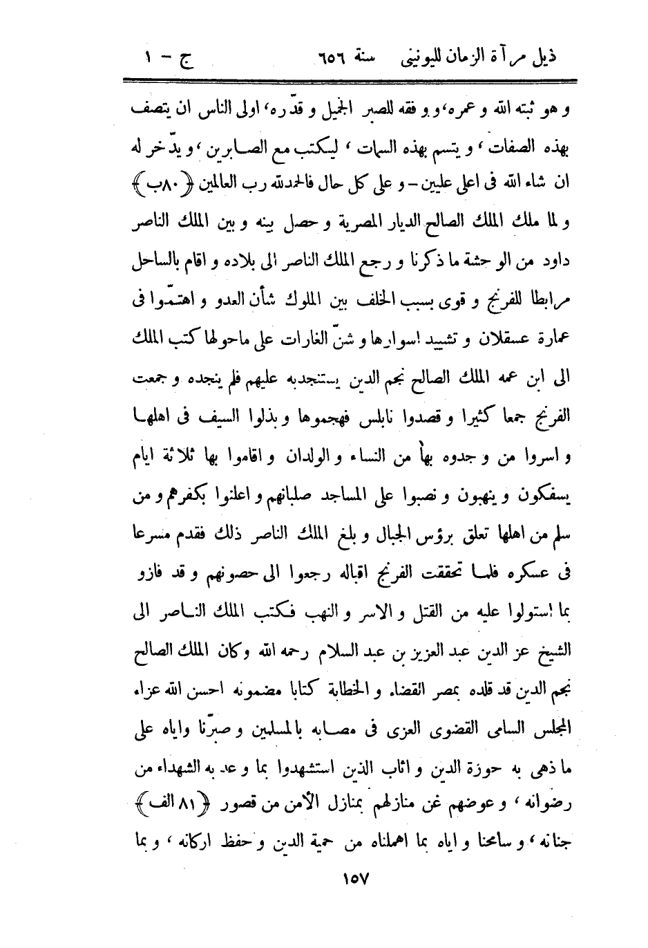 وهو ثبته الله وعمره، ووفقه للصبر الجميل وقدّره، أولى الناس أن يتصف بهذه الصفات، ويتسم بهذه السمات، ليكتب مع الصابرين، ويدّخر له إن شاء الله في أعلى عليين وعلى كل حال فالحمد لله رب العالمين ولما ملك الملك الصالح الديار المصرية وحصل بينه وبين الملك الناصر داود من الوحشة ما ذكرنا ورجع الملك الناصر إلى بلاده وأقام بالساحل مرابطاً للفرنج وقوي بسبب الخلف بين الملوك شأن العدو واهتمّوا في عمارة عسقلان وتشييد أسوارها وشنّ الغارات على ما حولها كتب الملك إلى ابن عمه الملك الصالح نجم الدين يستنجد به عليهم فلم ينجده وجمعت الفرنج جمعاً كثيراً وقصدوا نابلس فهجموها وبذلوا السيف في أهلها وأسروا من وجده بها من النساء والولدان وأقاموا بها ثلاثة أيام يسفكون وينهبون ونصبوا على المساجد صلبانهم وأعلنوا بكفرهم ومن سلم من أهلها تعلق برؤوس الجبال وبلغ الملك الناصر ذلك فقدم مسرعاً في عسكره فلما تحققت الفرنج إقباله رجعوا إلى حصونهم وقد فازوا بما استولوا عليه من القتل والأسر والنهب فكتب الملك الناصر إلى الشيخ عز الدين بن عبد السلام رحمه الله وكان الملك الصالح نجم الدين قد قلده بمصر القضاء والخطابة كتاباً مضمونه أحسن الله عزاء المجلس السامي القضوى العزى في مصابه بالمسلمين وصبّرنا وإياه على ما ذهى به حوزة الدين وأثاب الذين استشهدوا بما وعد به الشهداء من رضوانه، عوضهم عن منازلهم بمنازل الأمن من قصور جنانه، وسامحنا وإياه بما أهملناه من حمية الدين وحفظ أركانه، وبما