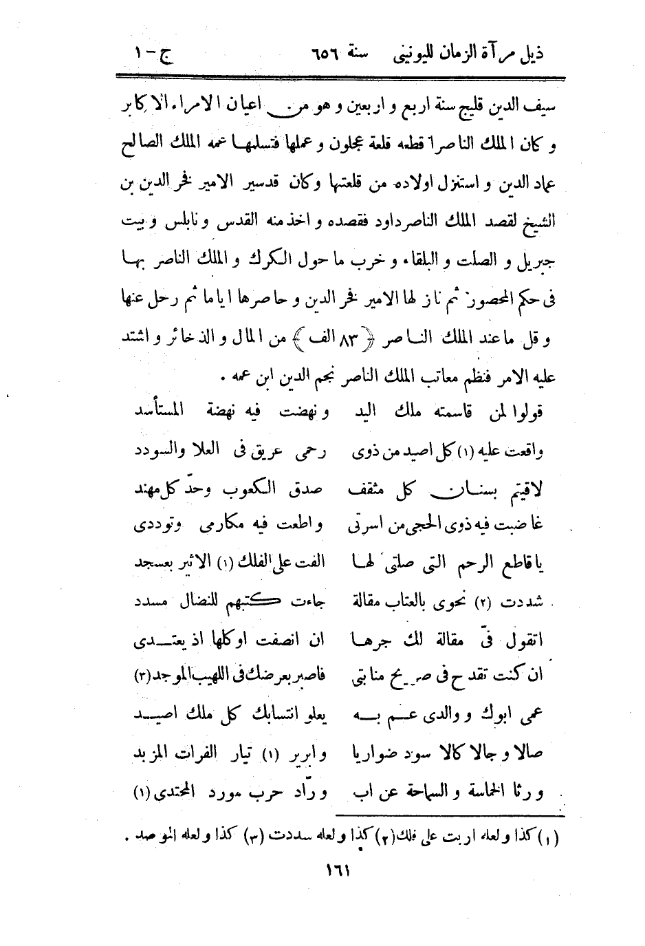 وكان الملك الناصر أقطعه قلعة عجلون وعملها فتسلمها عمه الملك الصالح عماد الدين واستنزل أولاده من قلعتها وكان قد سير الأمير فخر الدين بن الشيخ لقصد الملك الناصر داود فقصده وأخذ منه القدس ونابلس وبيت جبريل والصلت والبلقاء وخرب ما حول الكرك والملك الناصر بها في حكم المحصور ثم نازلها الأمير فخر الدين وحاصرها أياماً ثم رحل عنها وقل ما عند الملك الناصر من المال والذخائر واشتد عليه الأمر فنظم معاتب الملك الناصر نجم الدين ابن عمه: