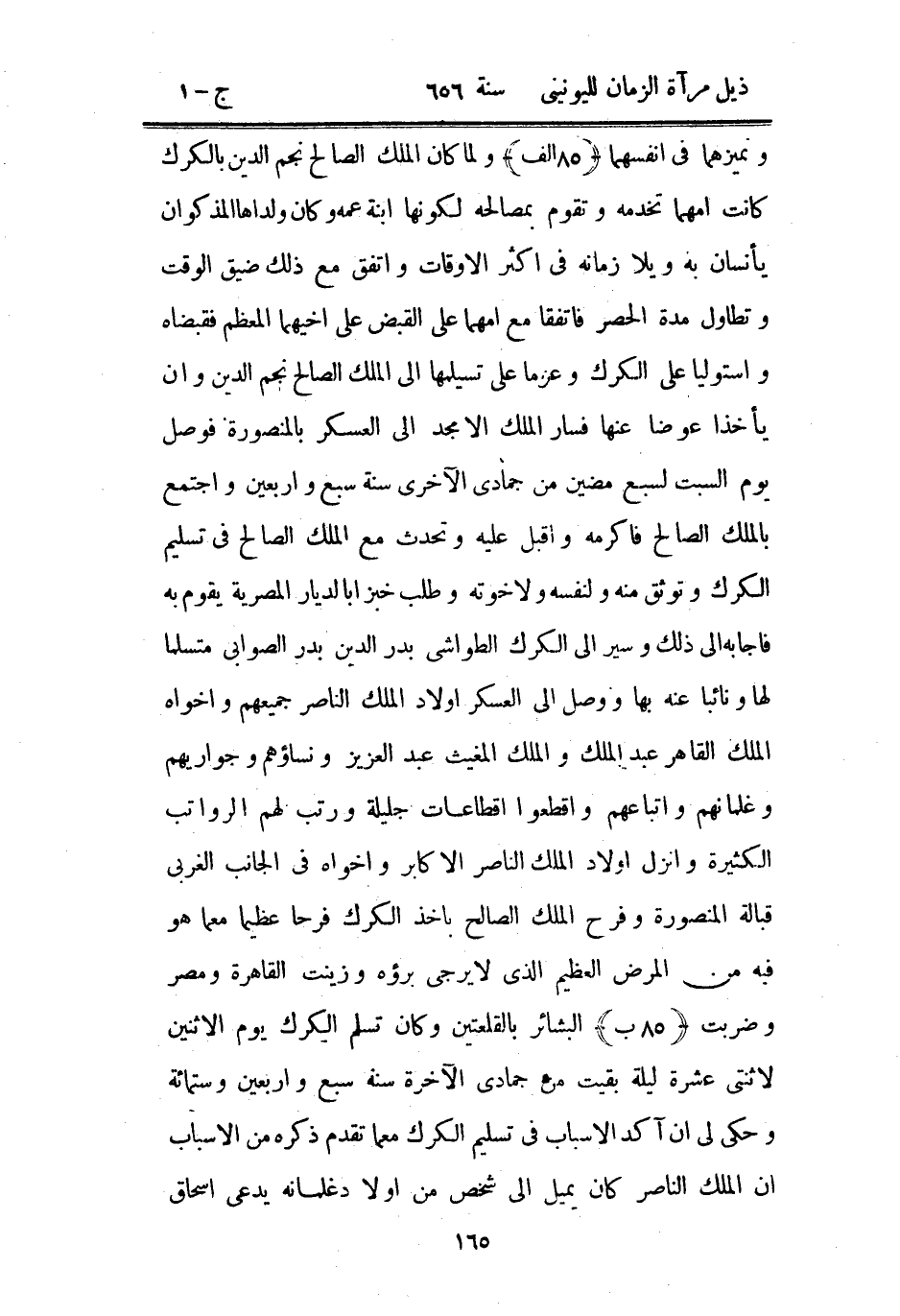 وتميزهما في أنفسهما ولما كان الملك الصالح نجم الدين بالكرك كانت أمهما تخدمه وتقوم بمصالحه لكونها ابنة عمه وكان والداها المذكوران يأنسان به ويلازمانه في أكثر الأوقات واتفق مع ذلك ضيق الوقت وتطاول مدة الحصر فاتفقا مع أمهما على القبض على أخيهما المعظم فقبضاه واستوليا على الكرك وعزما على تسليمها إلى الملك الصالح نجم الدين وأن يأخذا عوضاً عنها فسار الملك الأمجد إلى العسكر بالمنصورة فوصل يوم السبت لسبع مضين من جمادى الآخرى سنة سبع وأربعين واجتمع بالملك الصالح فأكرمه وأقبل عليه وتحدث مع الملك الصالح في تسليم الكرك وتوثق منه ولنفسه ولأخوته وطلب خبزاً بالديار المصرية يقوم به فأجابه إلى ذلك وسير إلى الكرك الطواشي بدر الدين بدر الصوابي متسلماً لها ونائباً عنه بها ووصل إلى العسكر أولاد الملك الناصر جميعهم وأخواه الملك القاهر عبد الملك والملك المغيث عبد العزيز ونساؤهم وجواريهم وغلمانهم وأتباعهم واقطعوا اقطاعات جليلة ورتب لهم الرواتب الكثيرة وأنزل أولاد الملك الناصر الأكابر وأخواه في الجانب الغربي قبالة المنصورة وفرح الملك الصالح بأخذ الكرك فرحاً عظيماً معما هو فيه من المرض العظيم الذي لا يرجى برؤه وزينت القاهرة ومصر وضربت البشائر بالقلعتين وكان تسلم الكرك يوم الاثنين لاثنتي عشرة ليلة بقيت من جمادى الآخرى سنة سبع وأربعين وستمائة وحكى لي أن آكد الأسباب في تسليم الكرك معماً تقدم ذكره من الأسباب أن الملك الناصر كان يميل إلى شخص من أولاد غلمانه يدعى إسحاق