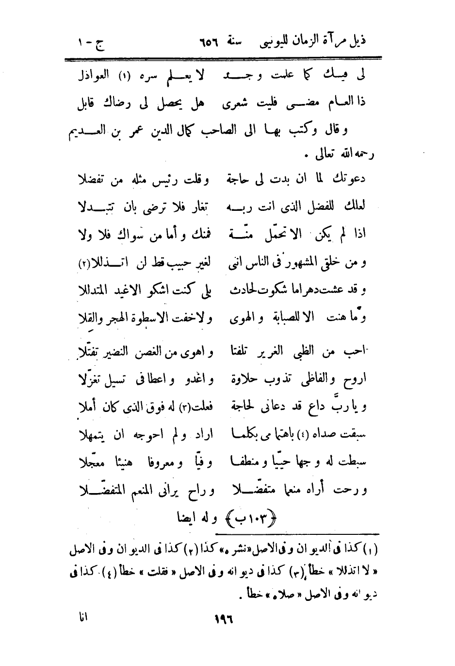 وقال وكتب بها إلى الصاحب كمال الدين عمر بن العديم رحمه الله تعالى