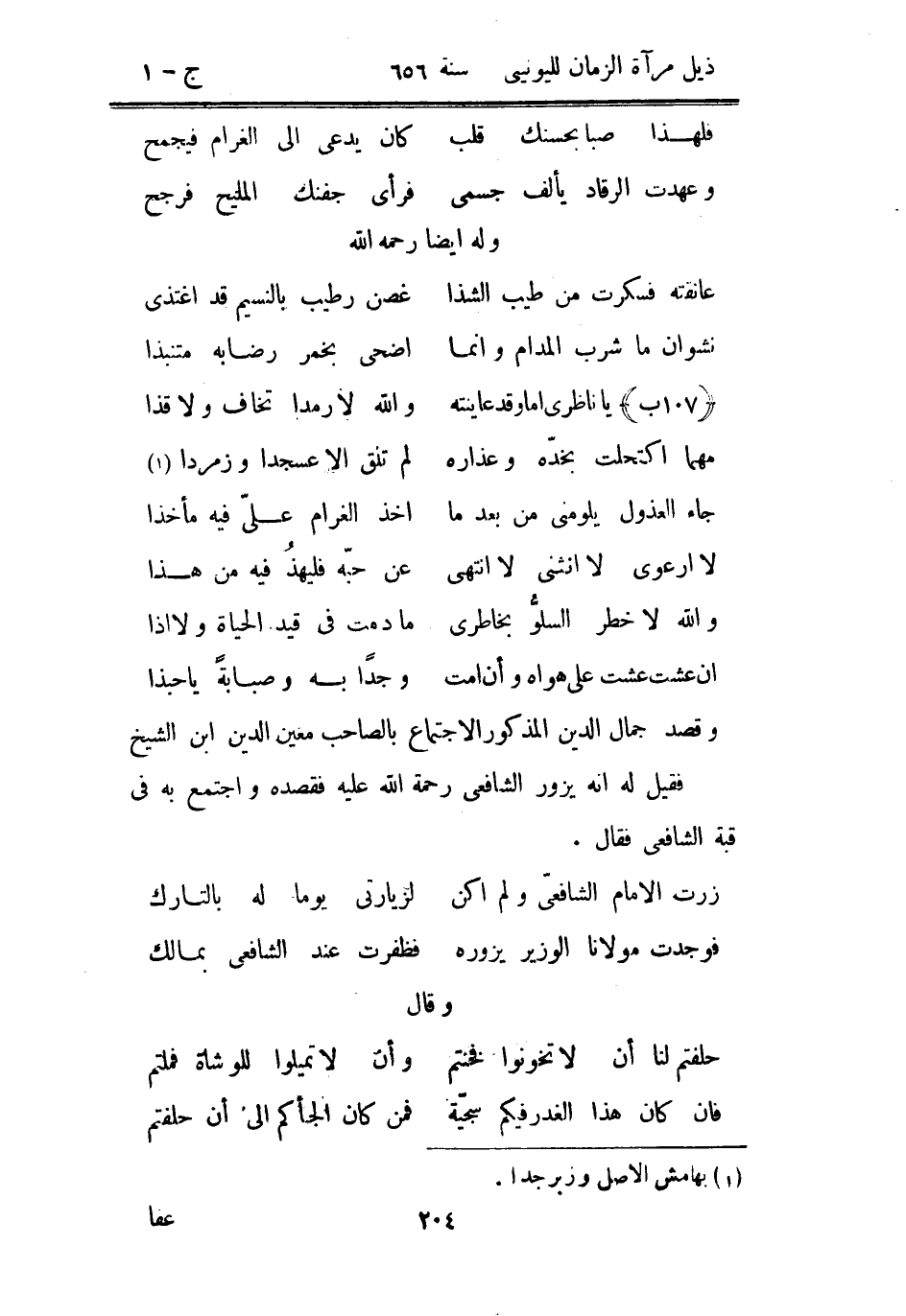 وقصد جمال الدين المذكور الأجتماع بالصاحب معين الدين ابن الشيخ فقيل له أنه يزور الشافعي رحمة الله عليه فقصده واجتمع به في قبة الشافعي فقال.