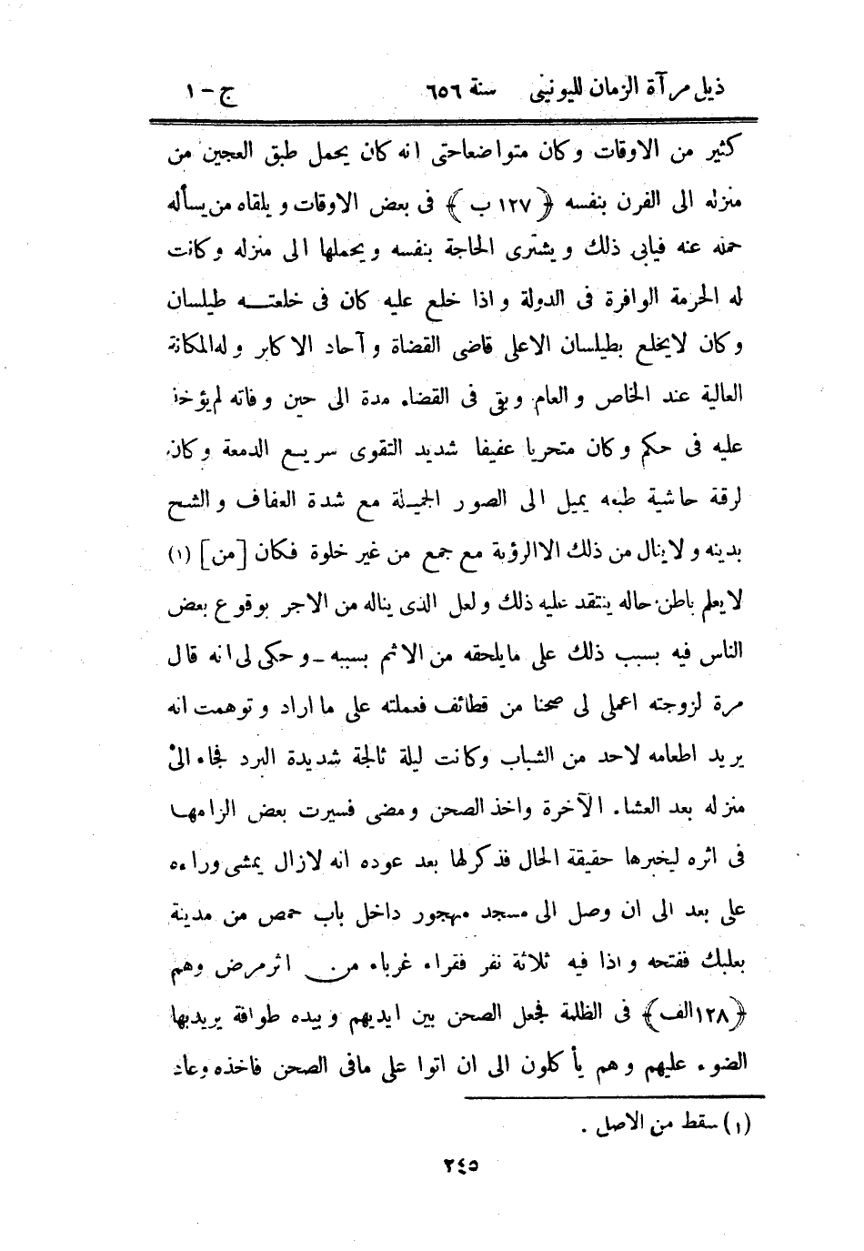 كثير من الأوقات وكان متواضعاً حتى أنه كان يحمل طبق العجين من منزله إلى الفرن بنفسه في بعض الأوقات ويلقاه من يسأله حمله عنه فيأبى ذلك ويشتري الحاجة بنفسه ويحملها إلى منزله وكانت له الحرمة الوافرة في الدولة وإذا خلع عليه كان في خلعته طيلسان وكان لا يخلع بطيلسان الأعلى قاضي القضاة وآحاد الأكابر وله المكانة العالية عند الخاص والعام وبقي في القضاء مدة إلى حين وفاته لم يؤخذ عليه في حكم وكان متحرياً عفيفاً شديد التقوى سريع الدمعة وكان لرقة حاشية طبعه يميل إلى الصور الجميلة مع شدة العفاف والشح بدينه ولا ينال من ذلك إلا الرؤية مع جمع من غير خلوة فكان من لا يعلم باطن حاله ينتقد عليه ذلك ولعل الذي يناله من الأجر بوقوع بعض الناس فيه بسبب ذلك على ما يلحقه من الإثم بسببه - وحكى لي أنه قال مرة لزوجته اعملي لي صحناً من قطائف فعملته على ما أراد وتوهمت أنه يريد إطعامه لأحد من الشباب وكانت ليلة ثالجة شديدة البرد فجاء إلى منزله بعد العشاء الآخرة وأخذ الصحن ومضى فسيرت بعض الزامها في أثره ليخبرها حقيقة الحال فذكر لها بعد عوده أنه لا زال يمشي وراءه على بعد إلى أن وصل إلى مسجد مهجور داخل باب حمص من مدينة بعلبك ففتحه وإذا فيه ثلاثة نفر فقراء غرباء من أثر مرض وهم في الظلمة فجعل الصحن بين أيديهم وبيده طوافة يريد بها الضوء عليهم وهم يأكلون إلى أن أتوا على ما في الصحن فأخذه وعاد