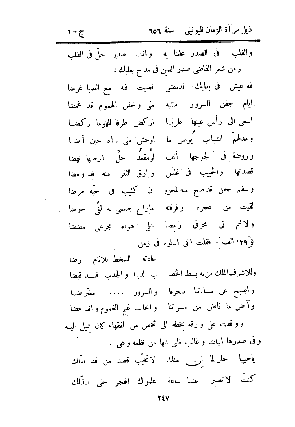 ومن شعر القاضي صدر الدين في مدح بعلبك: