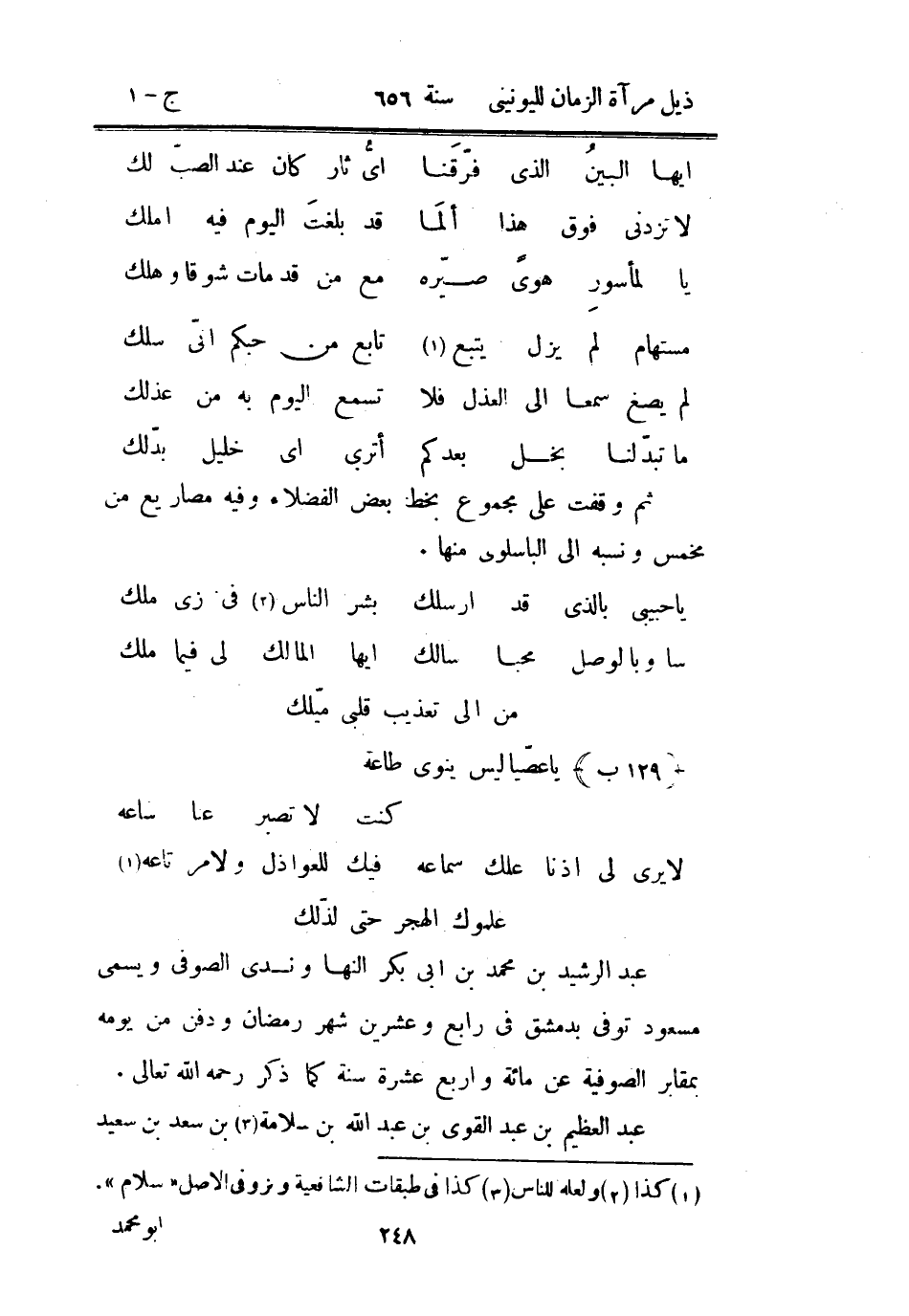 عبد الرشيد بن محمد بن أبي بكر النها وندى الصوفي ويسمى مسعود توفي بدمشق في رابع وعشرين شهر رمضان ودفن من يومه بمقابر الصوفية عن مائة وأربع عشرة سنة كما ذكر رحمه الله تعالى.